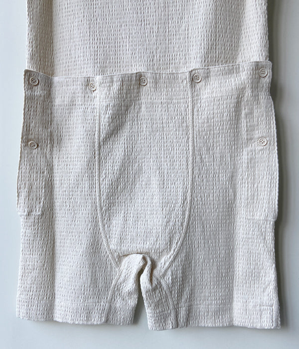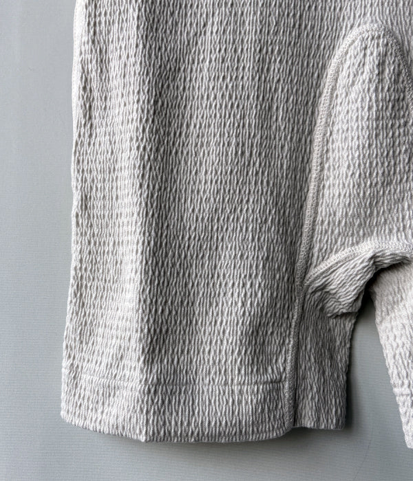 WRYHTからSHIRRING BORDER BODY SUITSが入荷しました。古き良き時代の紳士用下着から着想を得たボディスーツ。バックスタイルに配した開口から脚を出すことにより、通常のタンクトップを着る想定で着用できるデザイン。もちろんボディスーツとしても楽しめるユニークなピース。シアー素材のボトムを重ねるのも楽しい。アレンジのきく一枚です。