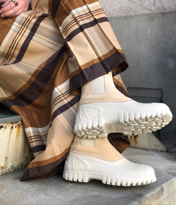 WRYHTからSIDE GORE COUNTRY BOOTSが入荷しました。イタリアの登山靴メーカー「DIEMME」とのコラボレーションITEM。悪天候等のロケーションにも対応するラバー製のソールと、アッパーの上質なレザーとのコントラストがユニーク。足を包み込むようなクッション性のある履き心地。敢えてきれいめなコーディネートに取り入れて楽しみたいです。