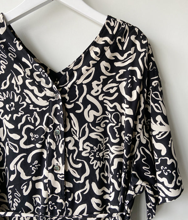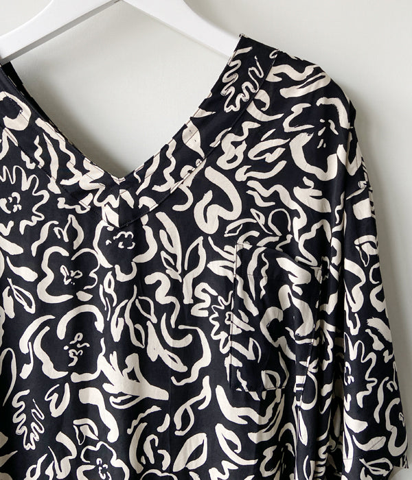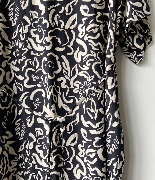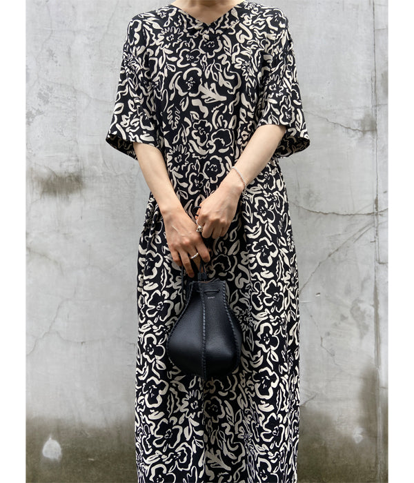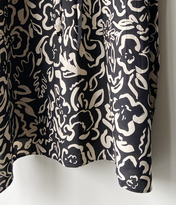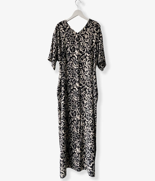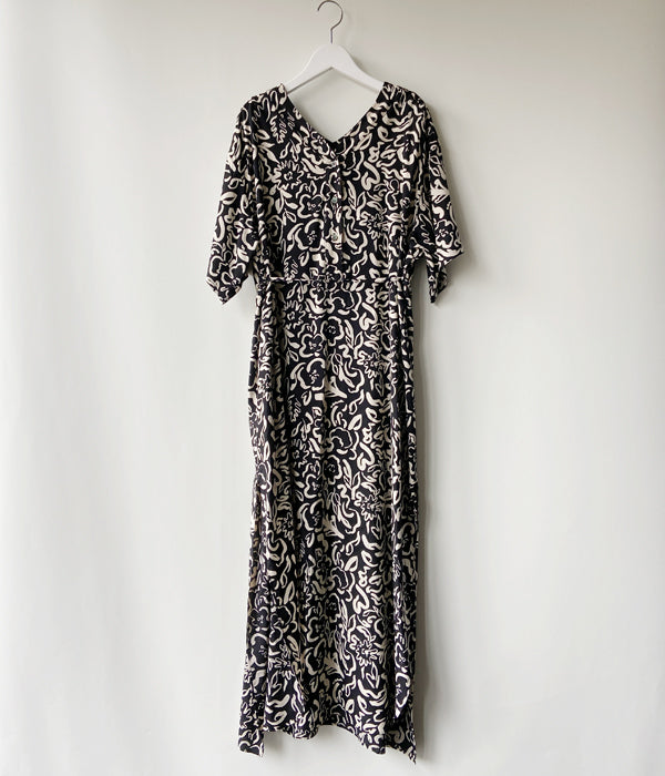 WRYHT/SLIT NECK PAJAMA DRESS(BLACK FLOWER)
