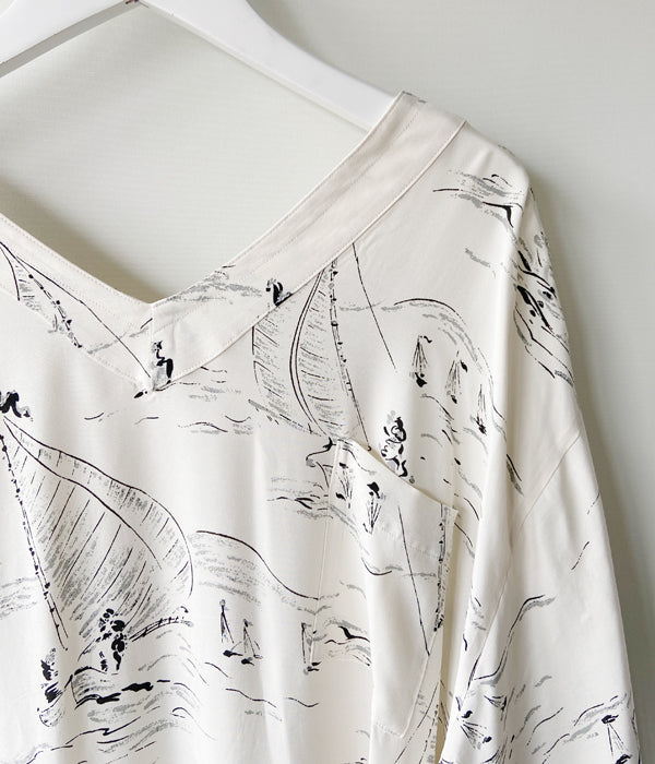 WRYHT/SLIT NECK PAJAMA DRESS(WHITE MARINE)