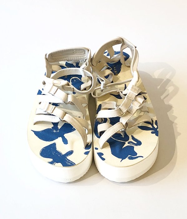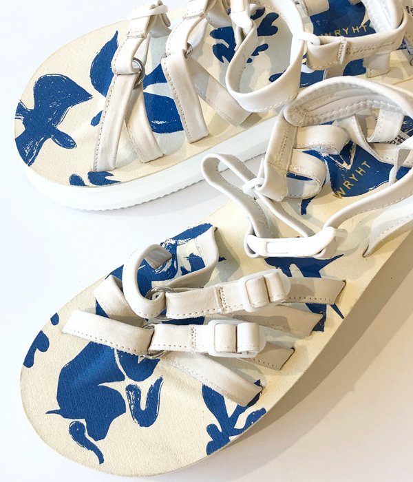 WRYHTからSTRAP SANDALが入荷しました。シューズブランド「SUICOKE」とのコラボレーションITEM。スイコック定番モデルをベースに、Vibramソールや独自の凸凹がついたフットベッドにより足への負担が少なく軽量で弾むような履き心地。ストラップはレザー仕様、今シーズンを象徴するドローイングパターンをプリントしWRYHTらしいムードのある足元を演出してくれます。