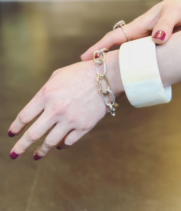 8UEDEからNASUKAN BRACELETが入荷しました。11個のナスカンをチェーンの様に連ねたブレスレット。可動パーツは14kc(14金)の一か所のみで、それ以外はフェイクというユニークなデザイン。オリジナリティー、デザイン性ともに唯一無二なアイテムとなっています。