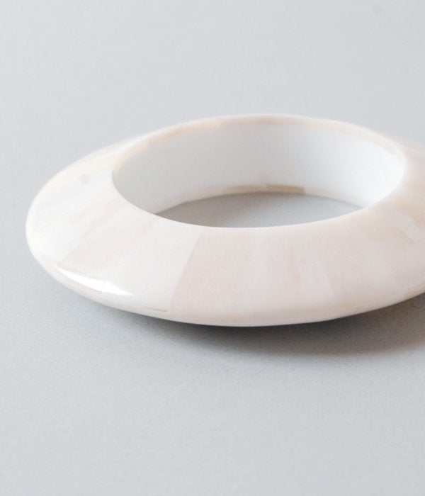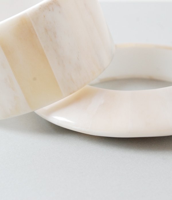 命を全うしたBUFFALO BONEをパッチワークし、エッジの効いたフォルムに仕上げたバングル。自然のカラーグラデーションが何とも美しく、様々なスタイルに馴染みます。