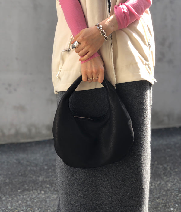 AetaからDEER LEATHER ONE SHOULDER Mが入荷しました。ころんと丸みのあるフォルムと太めなハンドルとのバランスが面白いデザインの新作ワンショルダーバッグ。表面は丈夫でソフトな肌触りが魅力のディアレザーを、内側にはピッグレザーを使用し高級感のある仕上がりに。