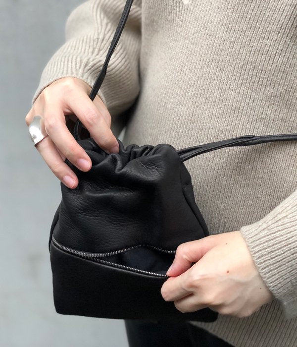 Aeta/DEER LEATHER SHOULDER S with ZIPPER(BLACK)