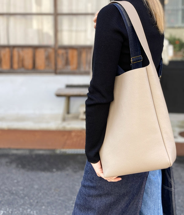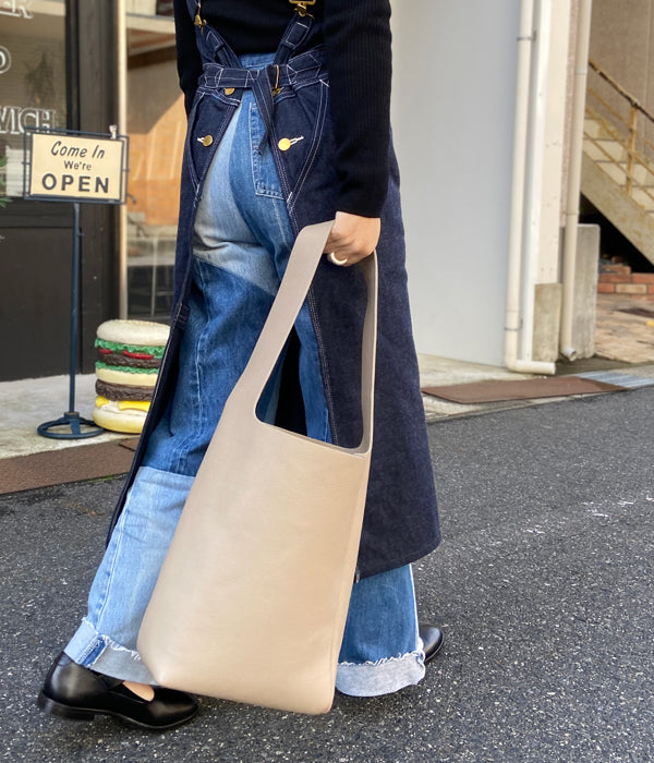 Aeta/PEBBLE GRAIN LEATHER SHOULDER S (GRAY BEIGE)