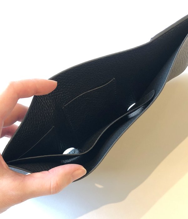 AetaからPEBBLE GRAIN LEATHER WALLET TypeA (BLACK)が入荷しました。ぺブルグレインレザーを使用のウォレット。三つ折タイプで片手にすっぽり収まるサイズ感。カードポケットの位置が分散されていて、一か所だけが分厚くなってしまう折り畳みウォレット特有のストレスのない作りになっています。