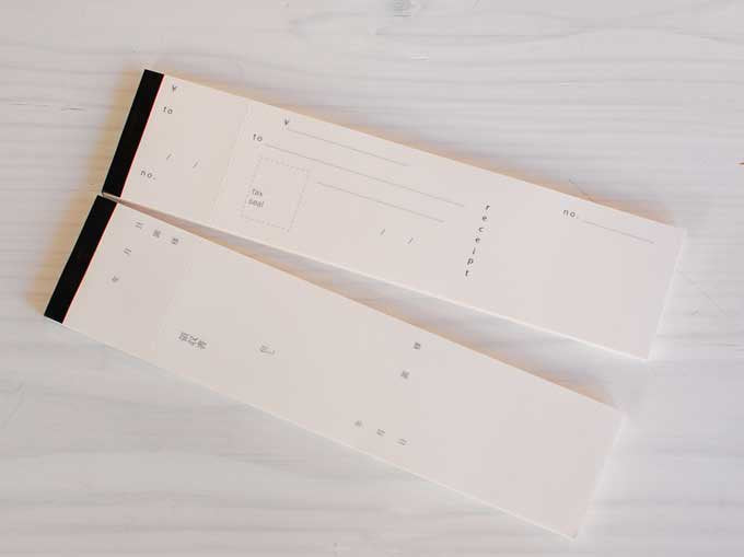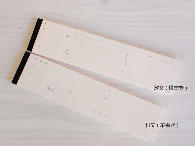 欧文(横書き)と和文(縦書き)を準備した東屋の領収書。シンプルでストイックなデザインは記入するさいも身が引き締まります!