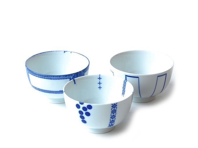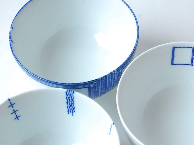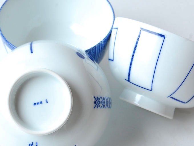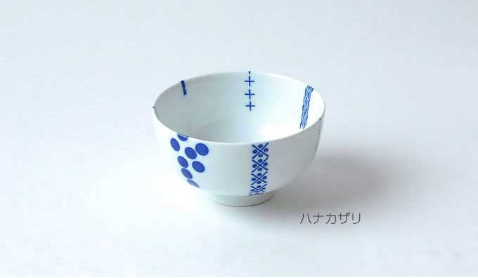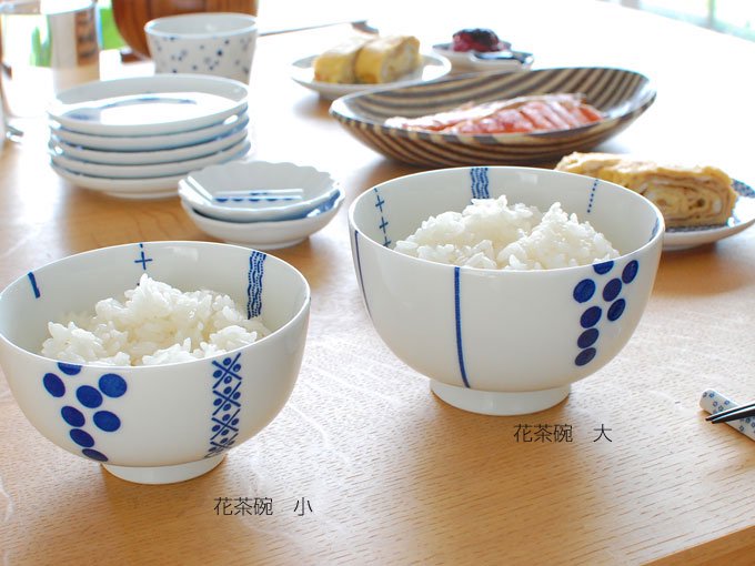 思わず集めたくなる東屋の印判選集。白磁器に鮮やかな藍色で表現されたデザインは印判技法によるもの。東屋の花茶碗はふっくらしたフォルムで、お米を優しく包んでくれます。表面には立花文穂さんによるデザインが絵付けされており、透明感のある白磁器がお米をよりいっそうおいしくしてくれます。サイズも大、小の2種類有り、夫婦や親子で揃える事も出来ます。