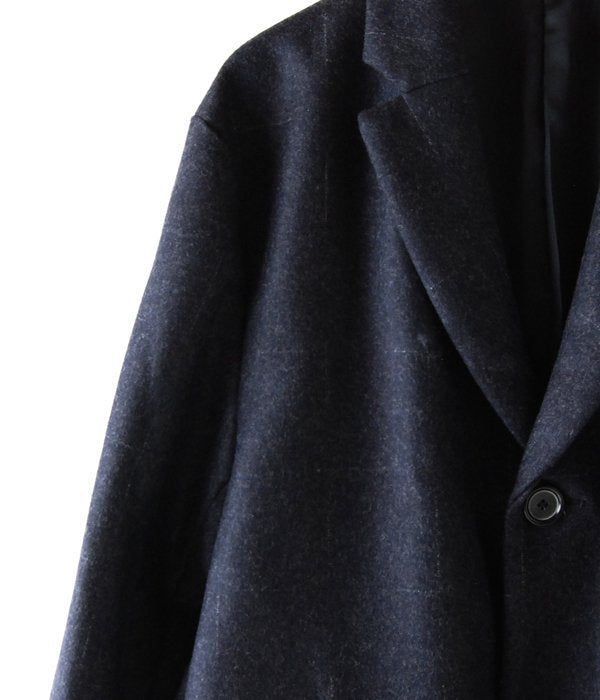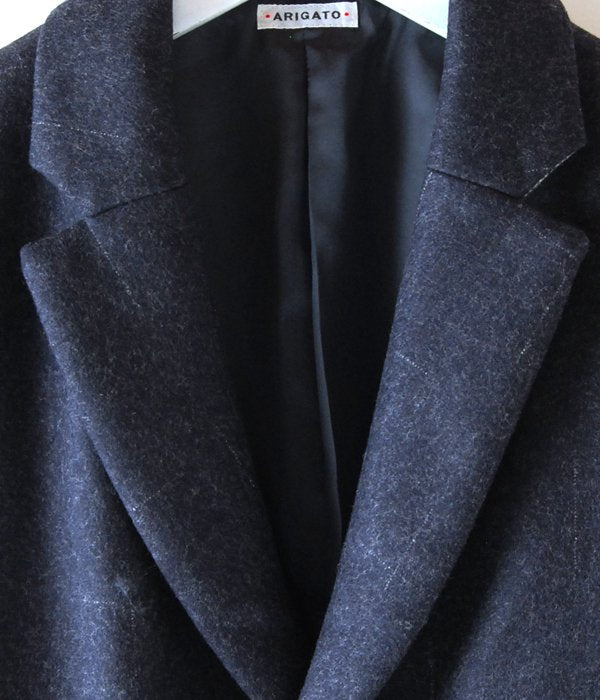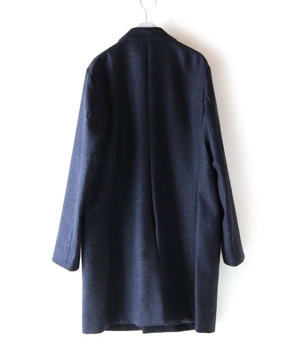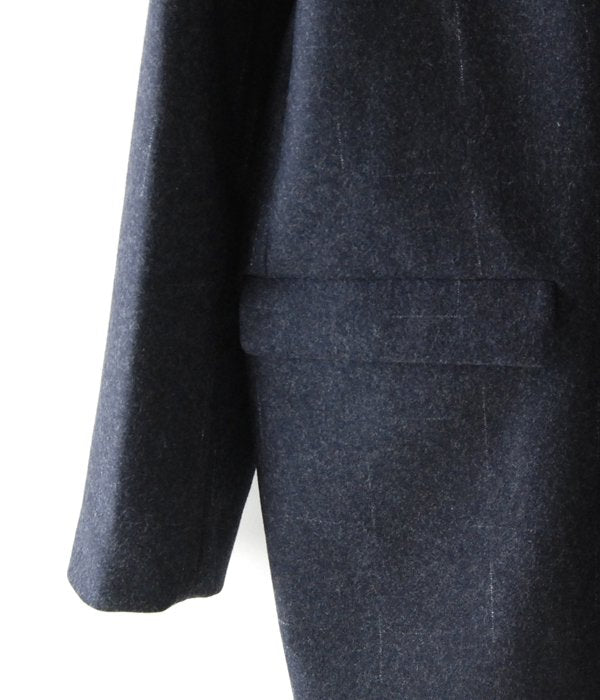 表面が滑らかで毛羽立ちの少ない2重織りのメルトン素材のコート。絣糸を所々に織り込んだ微かな模様が美しい仕上がり。すっきりしたシルエットでON/OFF使えます。