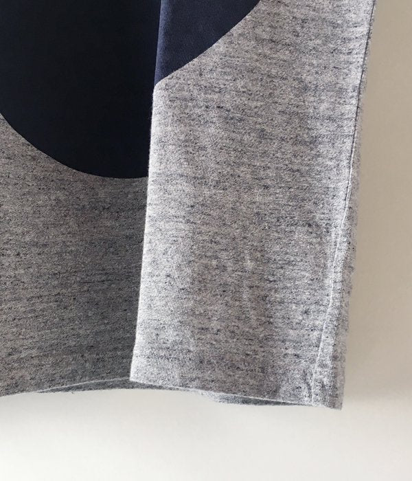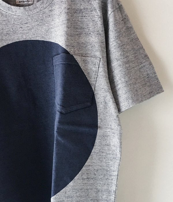 太めの糸で編み上げたふっくらとした素材感のTシャツです。ポケットの上から施された大丸がダイナミックなデザイン。