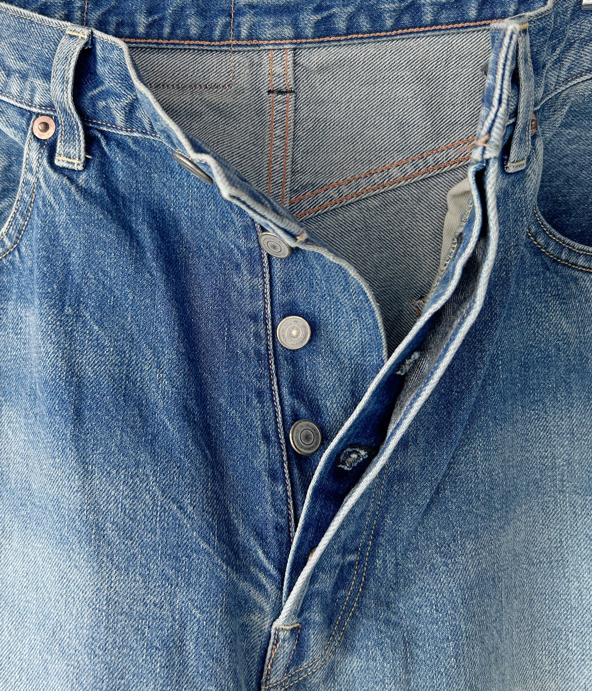 blurhms ROOTSTOCKから、13.5oz DENIM PANTS CLASSICが入荷しました。バランスよく設計され、太めながらもすっきりとしたシルエットを実現したワイドシルエットモデルが登場。履き込んだようなユーズド加工もナチュラルで秀逸な仕上がり。ボタンフライフロント、13.5ozセルビッチデニム、褐色して擦れたようなウェストパッチがワンポイント。ゆとりをもたせた迫力のあるワイドシルエットデニムです。
