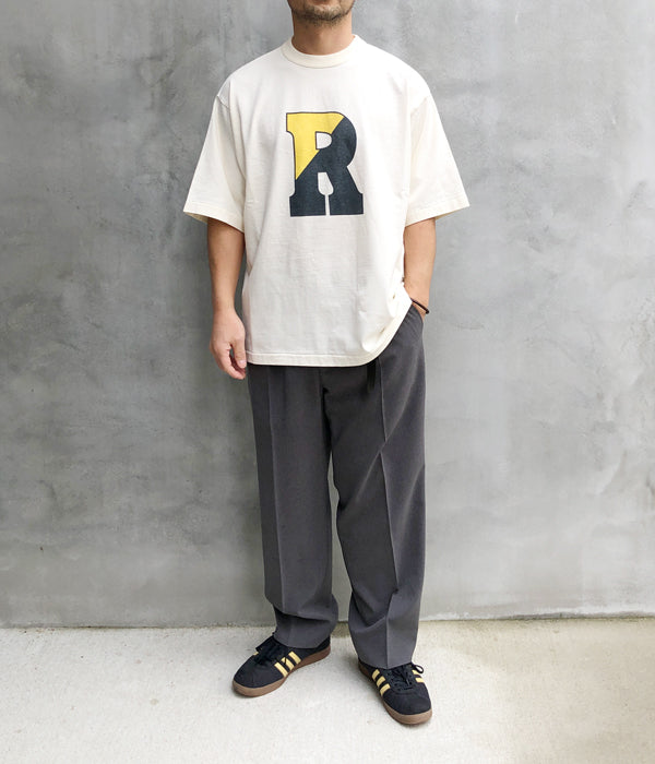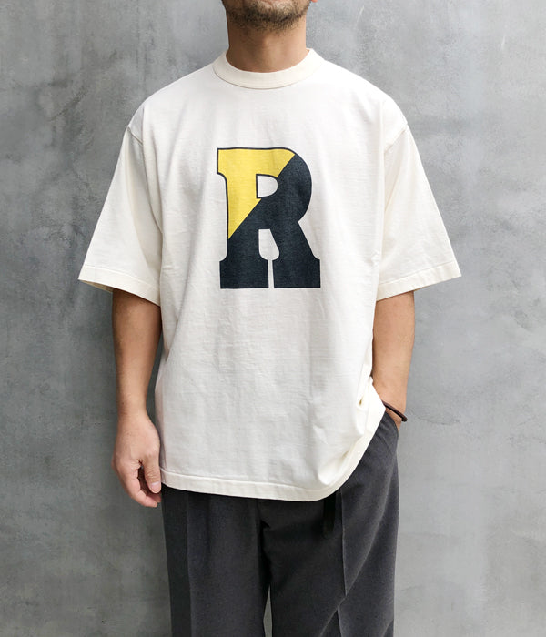blurhms ROOTSTOCKから、b-ROOTSTOCK 88/12 Print Tee WIDEが入荷しました。コットンベースにレーヨンをミックスし、なめらかな肌触りと上質な質感に仕上げたワイド仕立てのSS Tシャツ。ヘビーウェイトながらも柔らかい着心地が特徴の1着。フロントのRのプリントがポイント。