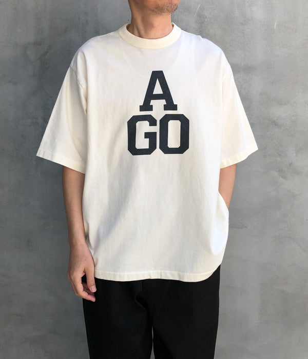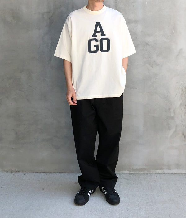 blurhms ROOTSTOCKから、CHIC-AGO 88/12 Print Tee WIDEが入荷しました。コットンベースにレーヨンをミックスし、なめらかな肌触りと上質な質感に仕上げたワイド仕立てのSS Tシャツ。ヘビーウェイトながらも柔らかい着心地が特徴の1着。フロントのAGOのプリントがポイント。