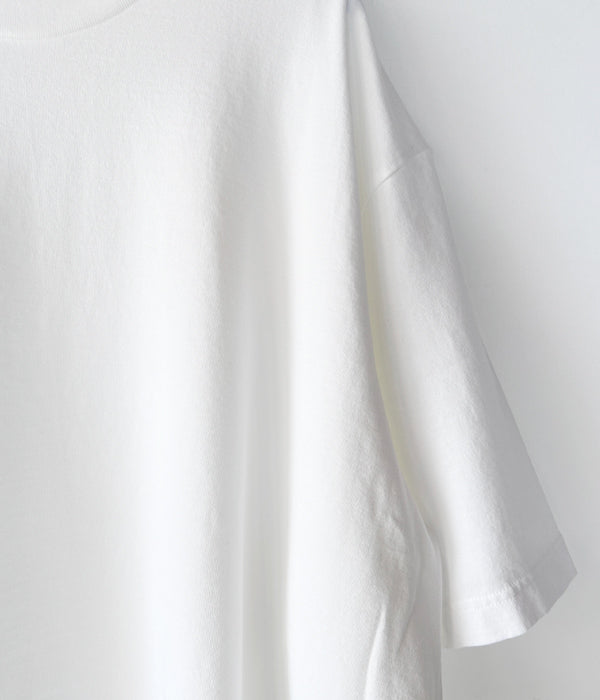 blurhms ROOTSTOCKから、CLASSIC TEE S/S BIGが入荷しました。程よくゆったりとしたリラックス感がポイントの半袖Tシャツ。ほのかな光沢が美しく、程よい厚みがありながらも柔らかな素材感。製品染め及び、製品洗いを施した風合いのある表情も◎。縮みにくい仕上げで日常でも使いまわしやすい1着。