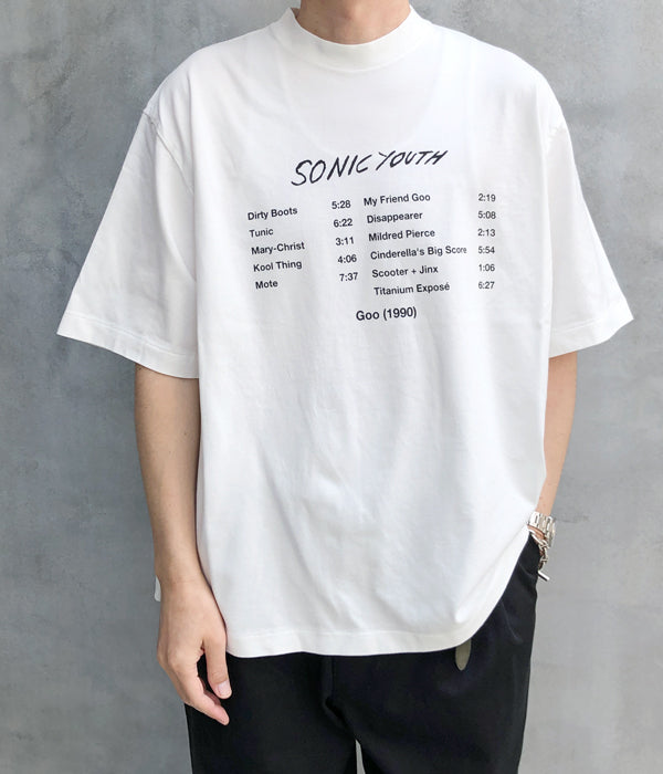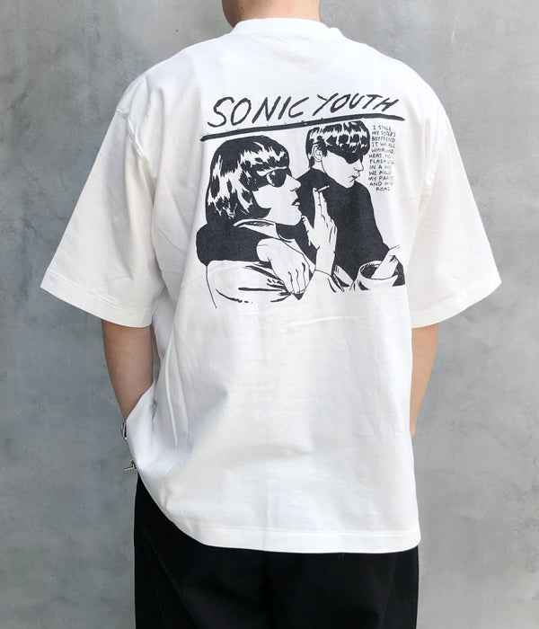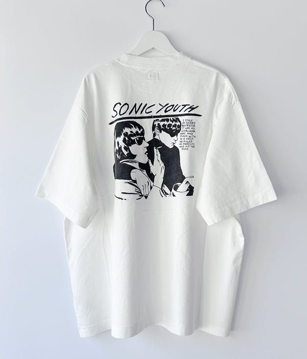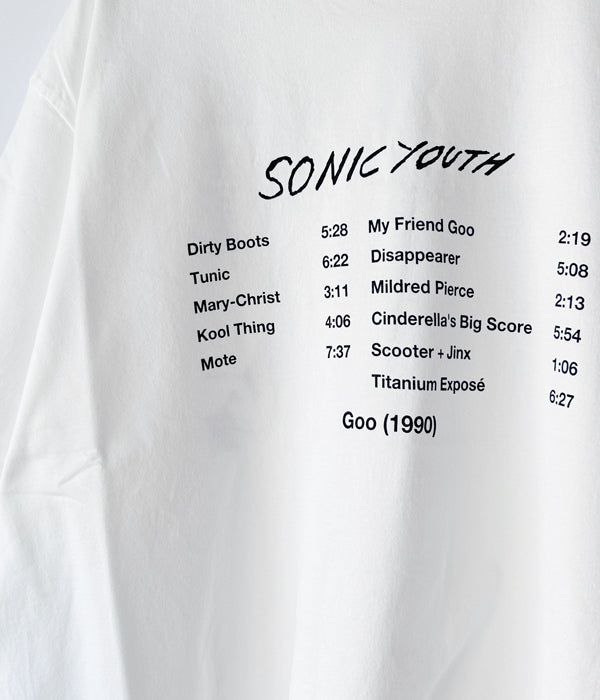 blurhms ROOTSTOCKから、Goo Print Tee WIDEが入荷しました。太番手の糸をハイゲージで編んだコットン天竺素材を使用した、ソフトな着心地が特徴のSS Tシャツ。Sonic Youthモチーフのプリントデザインによるコレクションより、前後モノトーンのデザインをあしらった注目の1着です。