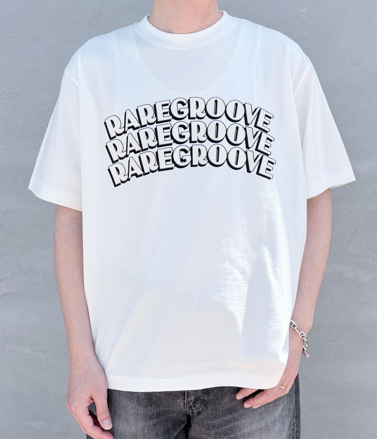 blurhms ROOTSTOCKから、RAREGROOVE Print Tee WIDEが入荷しました。太番手の糸をハイゲージで編んだコットン天竺素材を使用したSS Tシャツ。プリントを施した後に製品洗いを繰り返した風合いのある表情と、ソフトな着心地が特徴。フロントに3段でデザインしたRAREGROOVEのプリントがポイント。