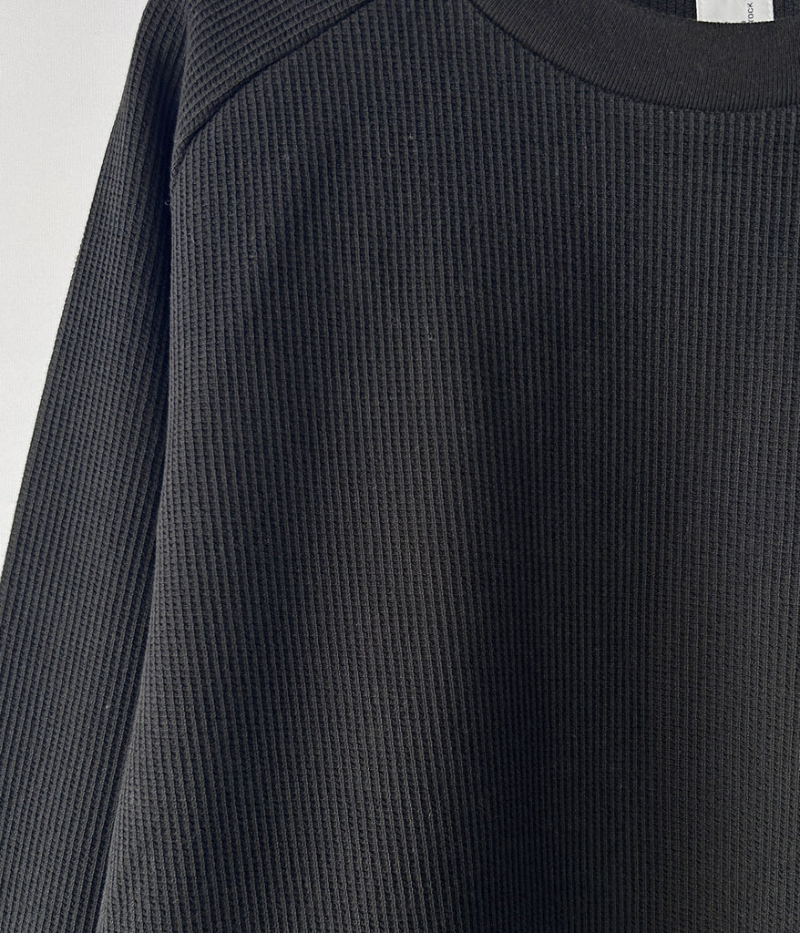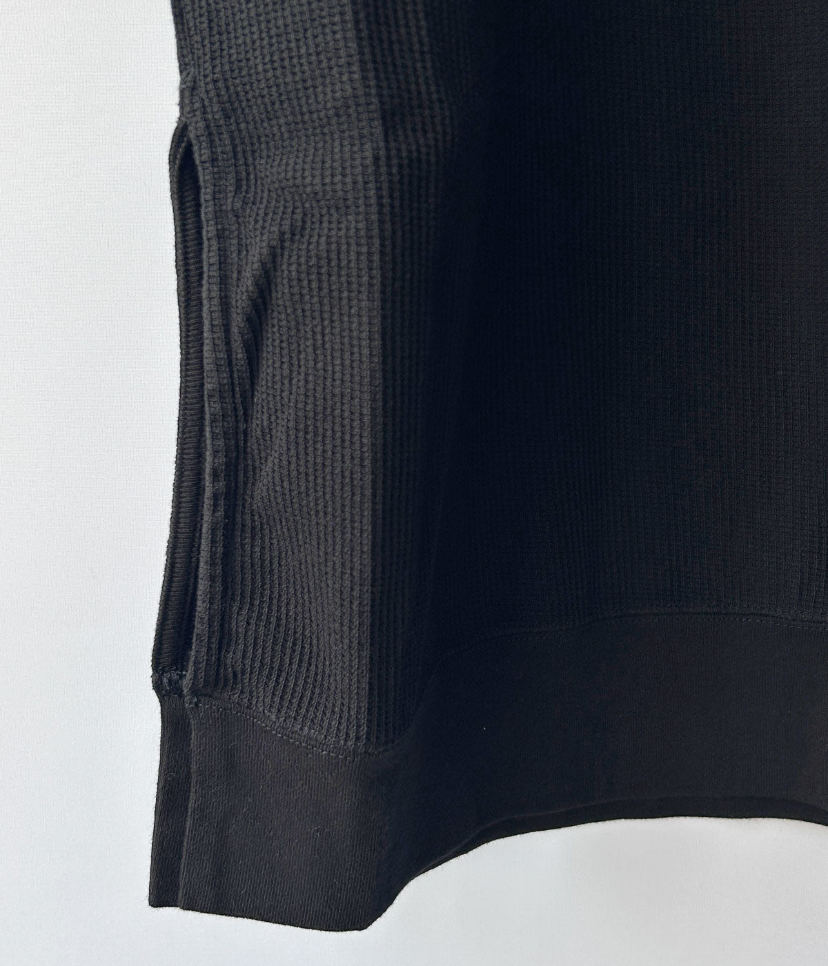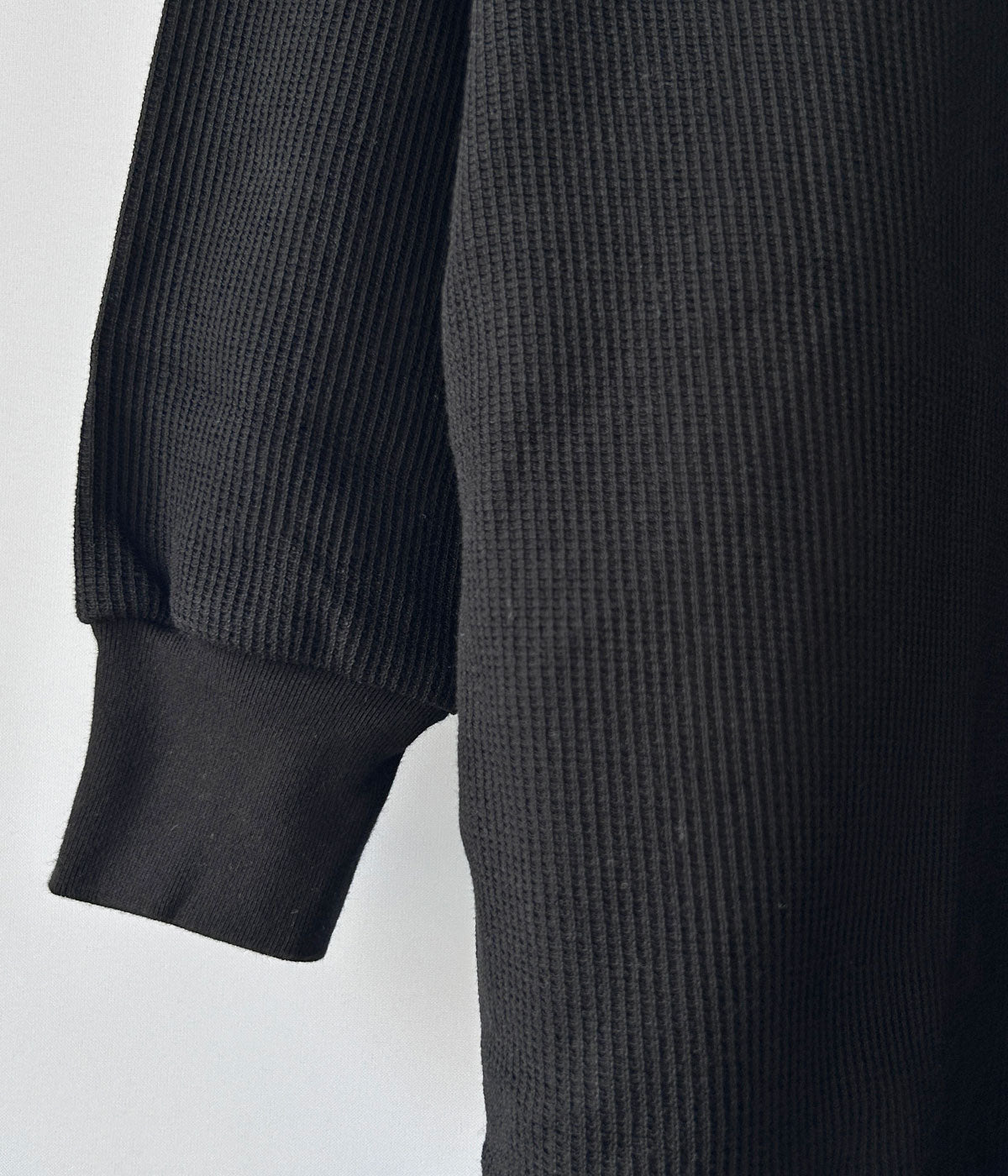 blurhms ROOTSTOCKから、ROUGH&SMOOTH CREW-NECK DRESSが入荷しました。表地は凹凸のある質感、裏地はフラットに仕上げたこだわりのワッフル生地を使用し、クルーネック&ラグランスリーブで仕立てたワンピースドレス。素材由来の光沢感のある表情と、洗いをかけたこなれた雰囲気がポイントです。サイドにポケットを備え、リブ付きの裾周りには両サイドにスリットを設けました。