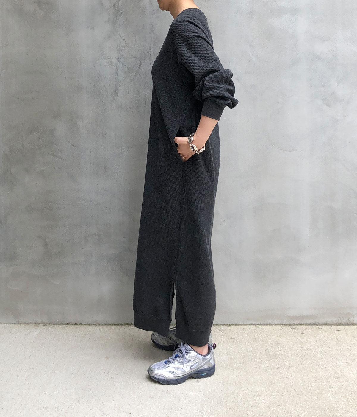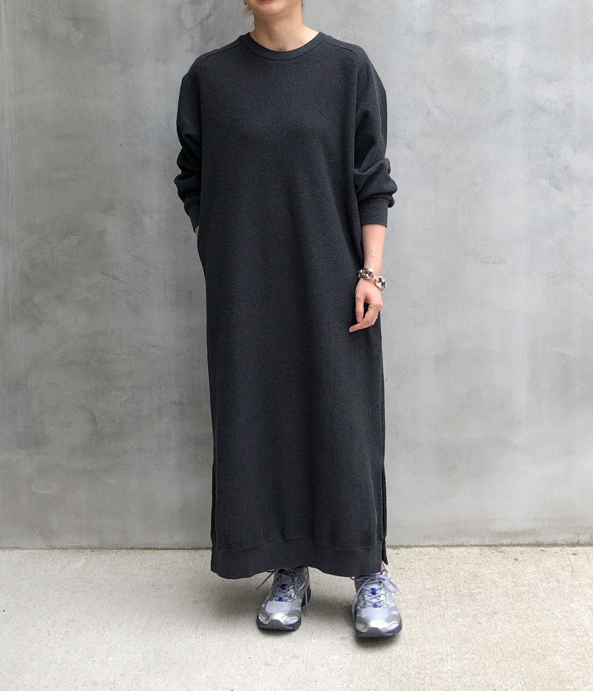 blurhms ROOTSTOCK/ROUGH&SMOOTH CREW-NECK DRESS (HEATHER CHARCOAL)
