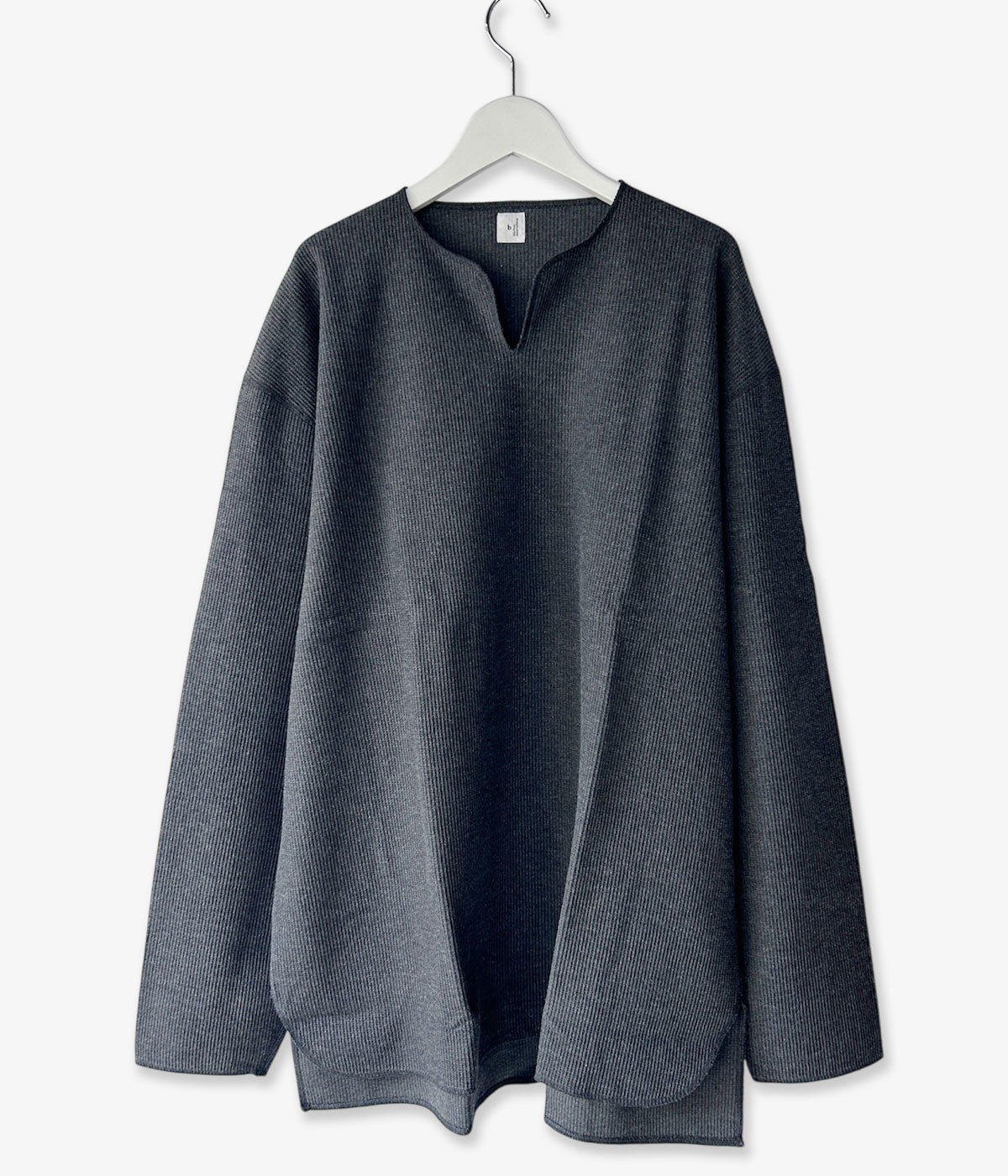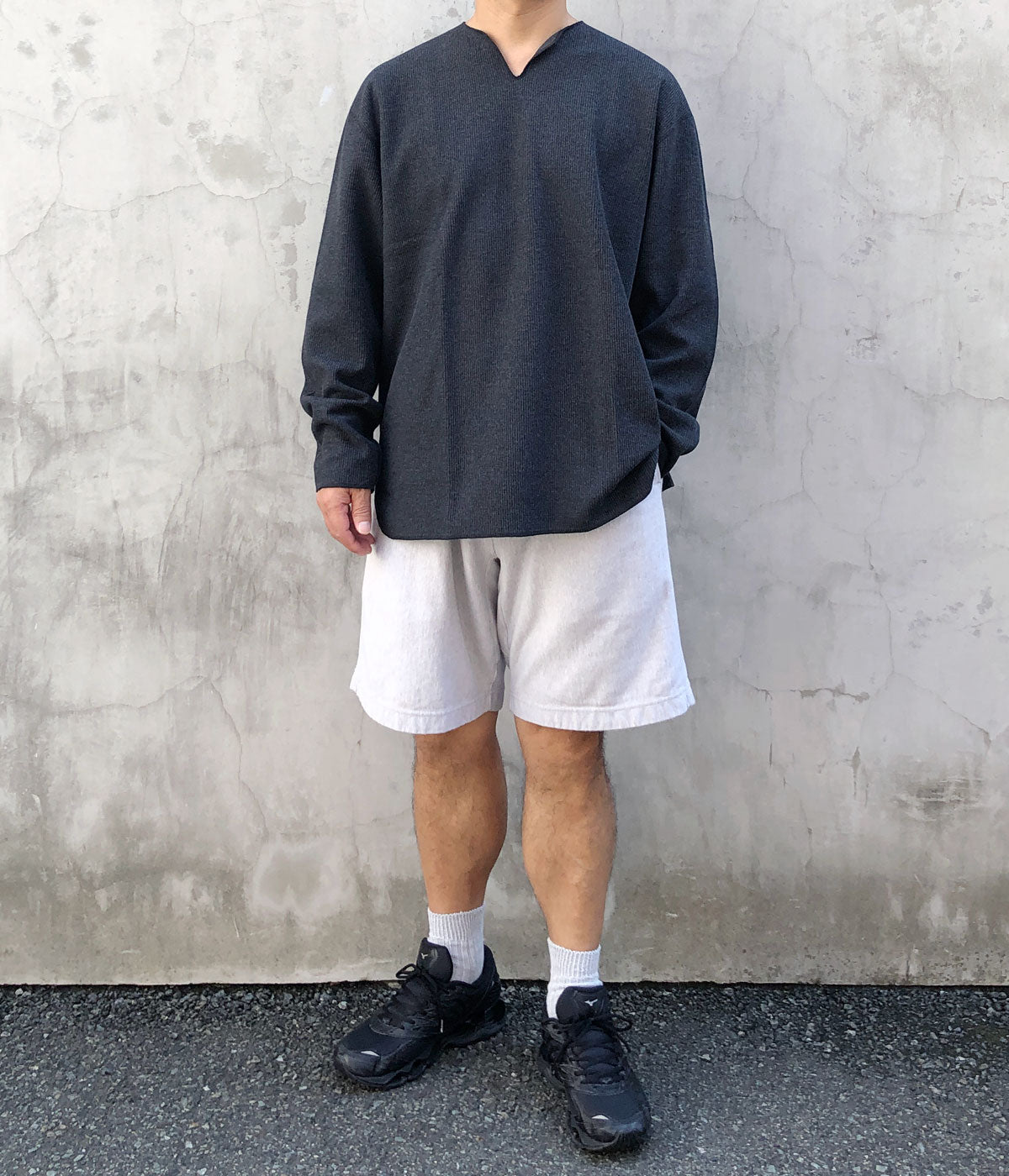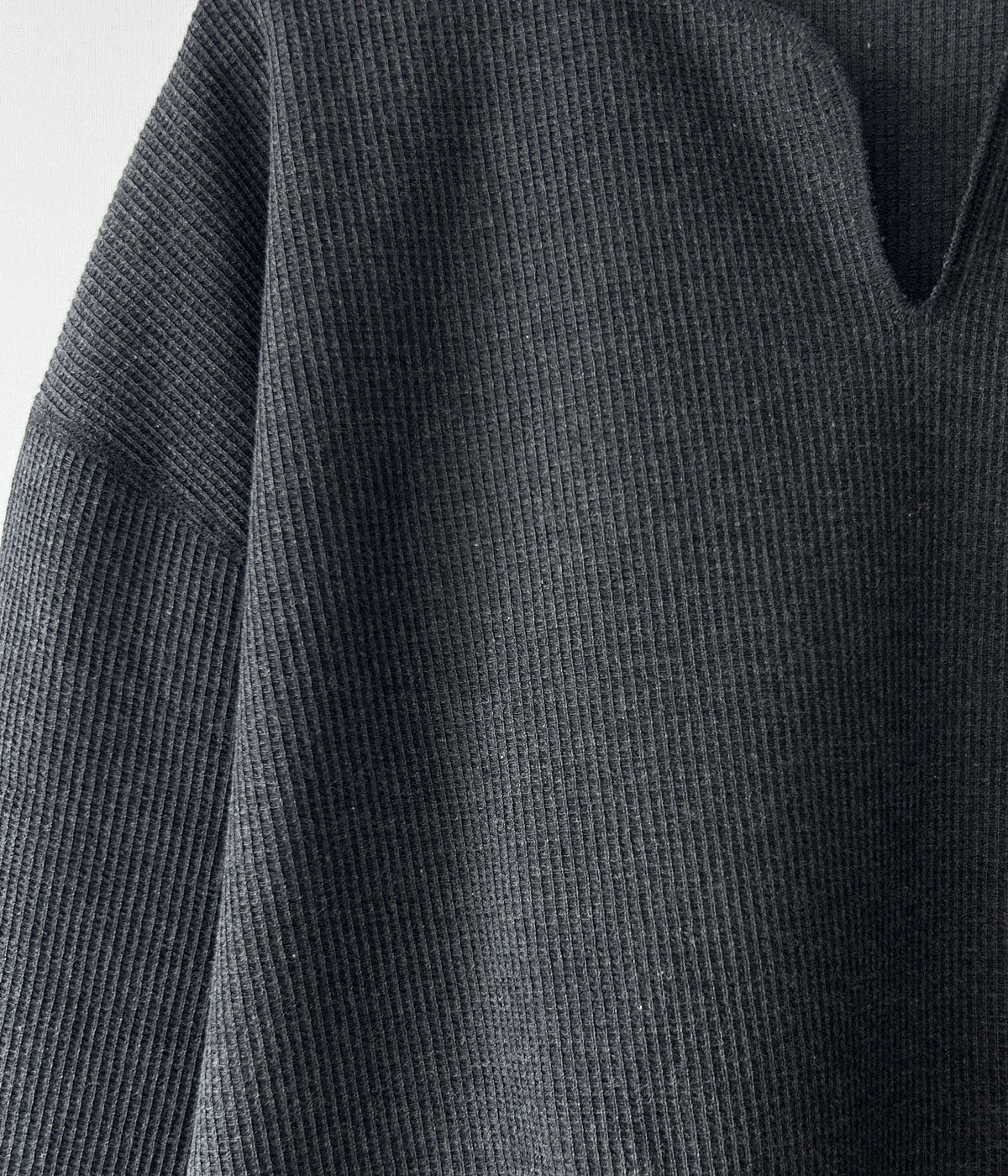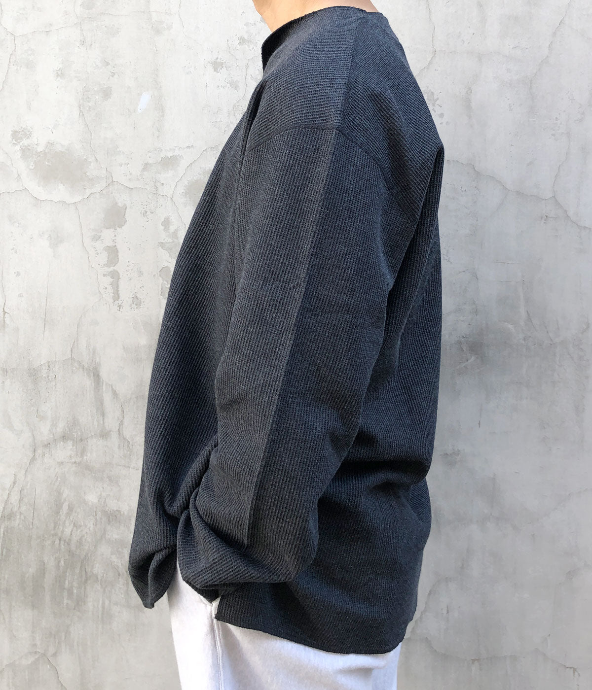 blurhms ROOTSTOCKから、ROUGH&SMOOTH THERMAL OVER NECK LSが入荷しました。表地は凹凸のある質感、裏地はフラットに仕上げたこだわりのワッフル生地を使用し、ネックの切込みや裾周りをオーバーロックで仕上げたラフな雰囲気をまとったLS。素材由来の光沢感のある表情と、洗いをかけたこなれた雰囲気がポイントです。