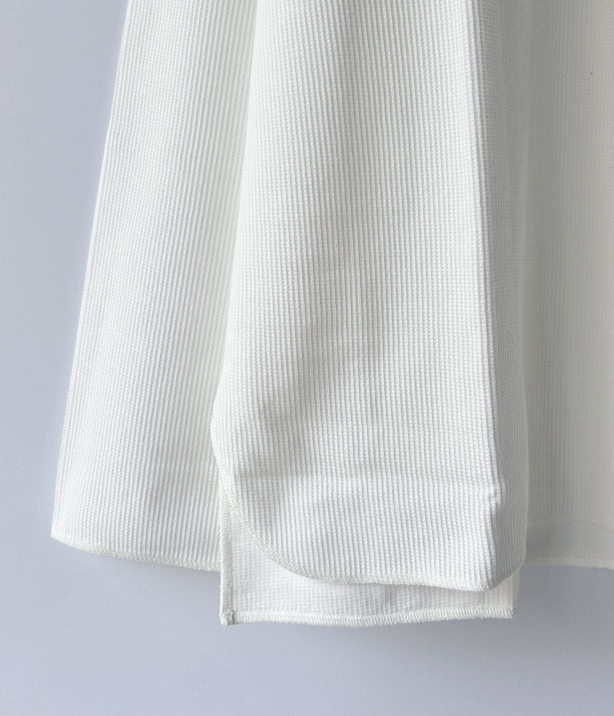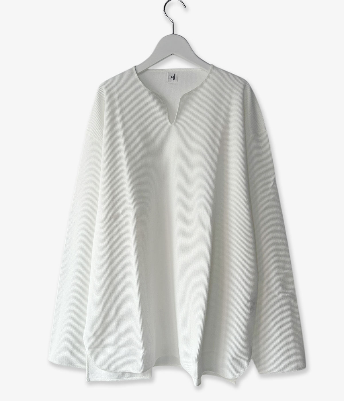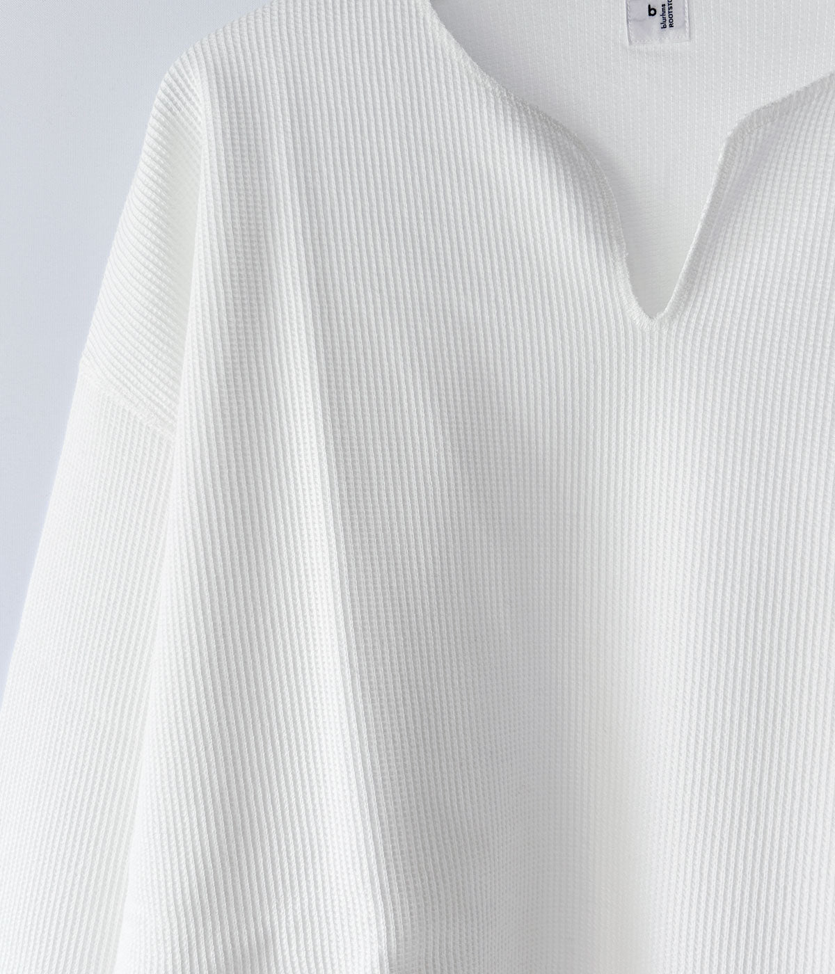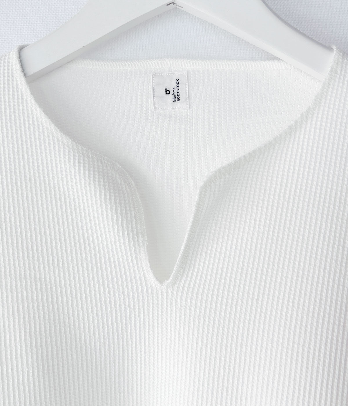 blurhms ROOTSTOCKから、ROUGH&SMOOTH THERMAL OVER NECK LSが入荷しました。表地は凹凸のある質感、裏地はフラットに仕上げたこだわりのワッフル生地を使用し、ネックの切込みや裾周りをオーバーロックで仕上げたラフな雰囲気をまとったLS。素材由来の光沢感のある表情と、洗いをかけたこなれた雰囲気がポイントです。