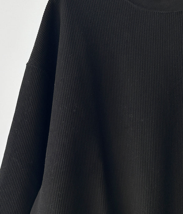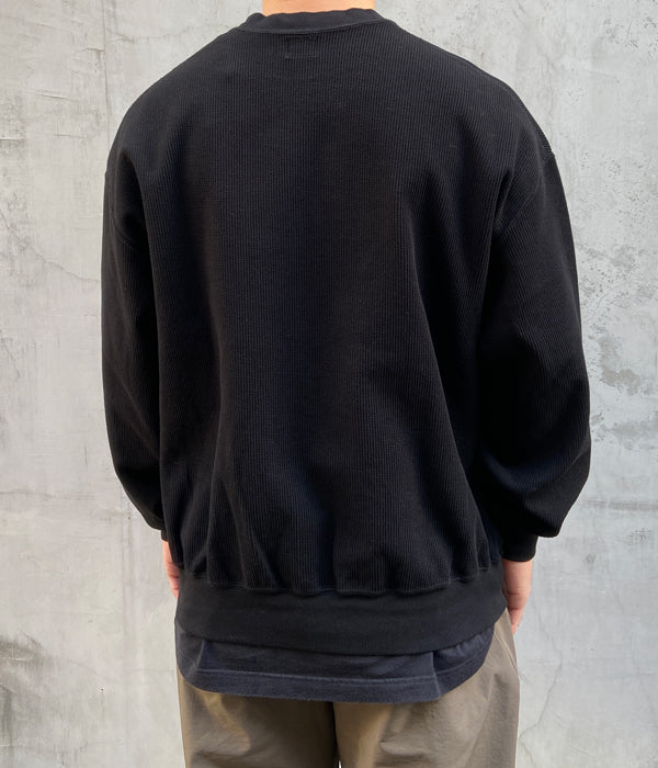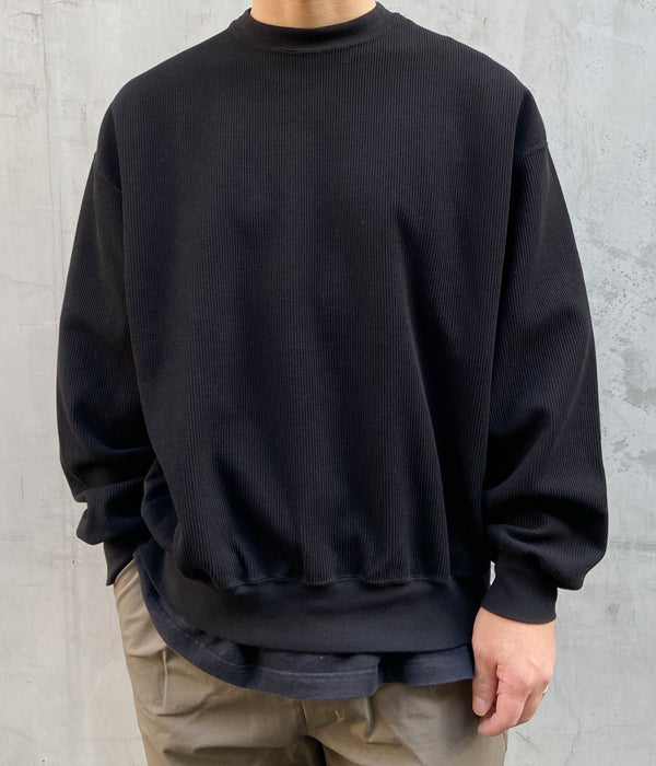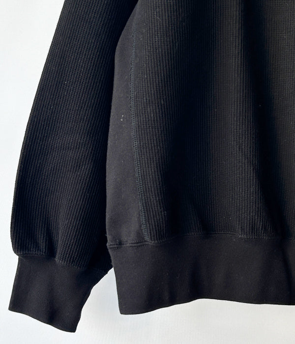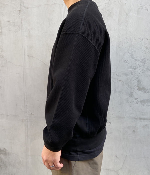 blurhms ROOTSTOCKから、ROUGH&SMOOTH THERMAL P/Oが入荷しました。表地は凹凸のある質感、裏地はフラットに仕上げたこだわりのワッフルロングスリーブ。素材由来の光沢感のある表情と、洗いをかけたこなれた雰囲気がポイントです。サイドに異素材で切り替えたエクスパンションガゼットを備えた機能的なデザイン。