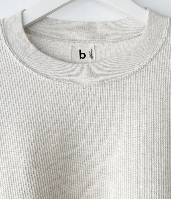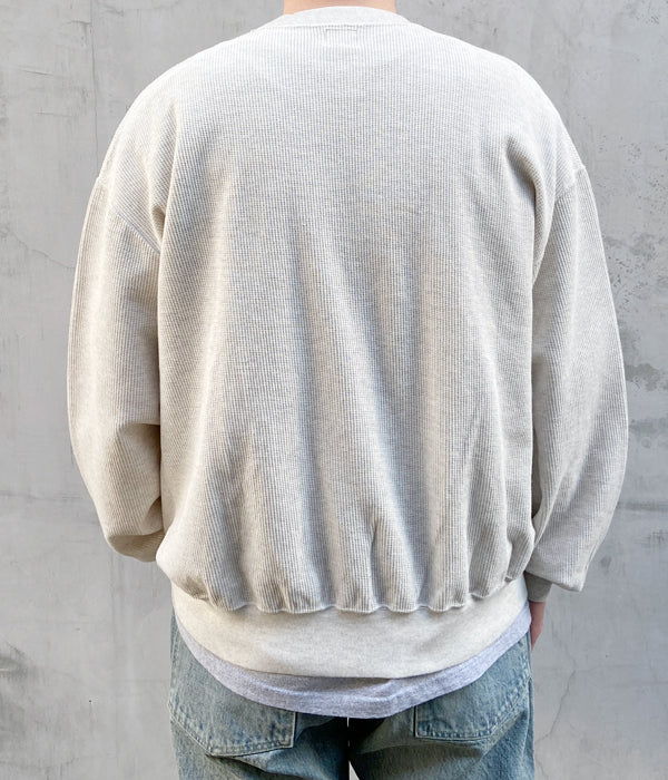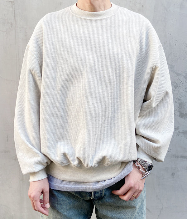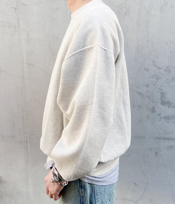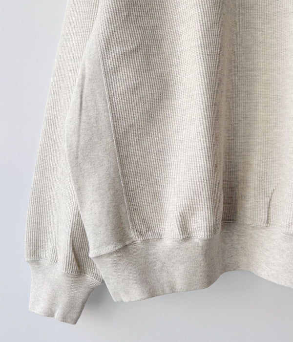 blurhms ROOTSTOCKから、ROUGH&SMOOTH THERMAL P/Oが入荷しました。表地は凹凸のある質感、裏地はフラットに仕上げたこだわりのワッフルロングスリーブ。素材由来の光沢感のある表情と、洗いをかけたこなれた雰囲気がポイントです。サイドに異素材で切り替えたエクスパンションガゼットを備えた機能的なデザイン。