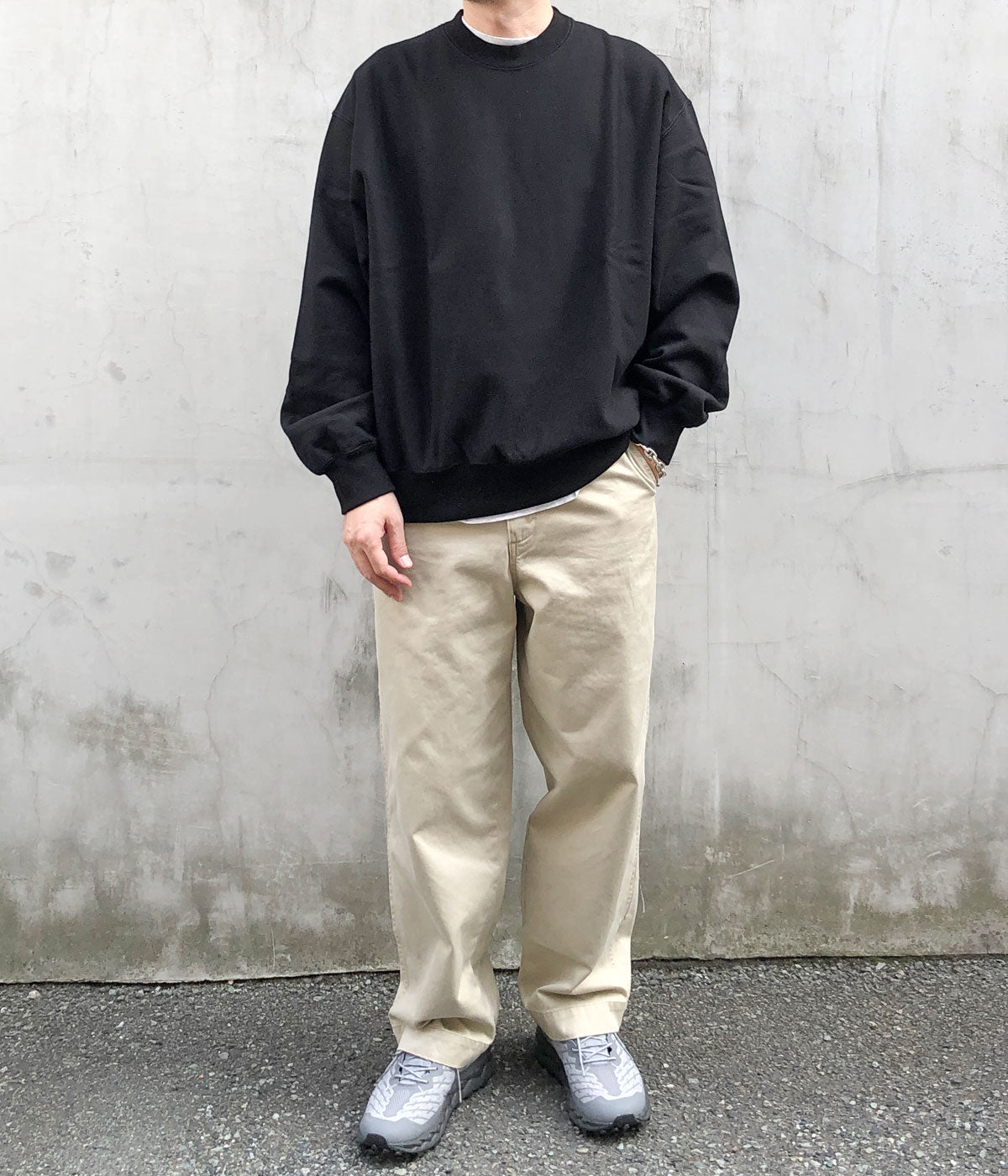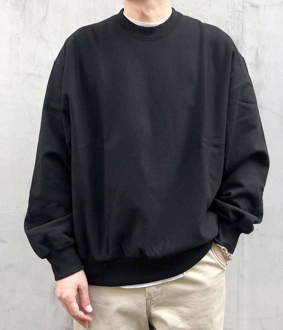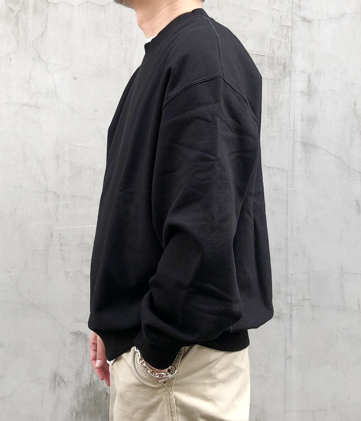 blurhms ROOTSTOCKから、SOFT&HARD SWEAT CREW-NECK P/O WIDEが入荷しました。裏のパイルループに無撚糸を仕様して肌触りをソフトに仕上げたクルーネックスウェット。ほのかな光沢が上品な印象を持ち、綺麗なシルエットを保つためハリとコシを強く低伸縮に仕上げつつも、着用時に最高の着心地になるように編み上げた至高の素材感。サイドパネルの切り替えられたパターンを採用。