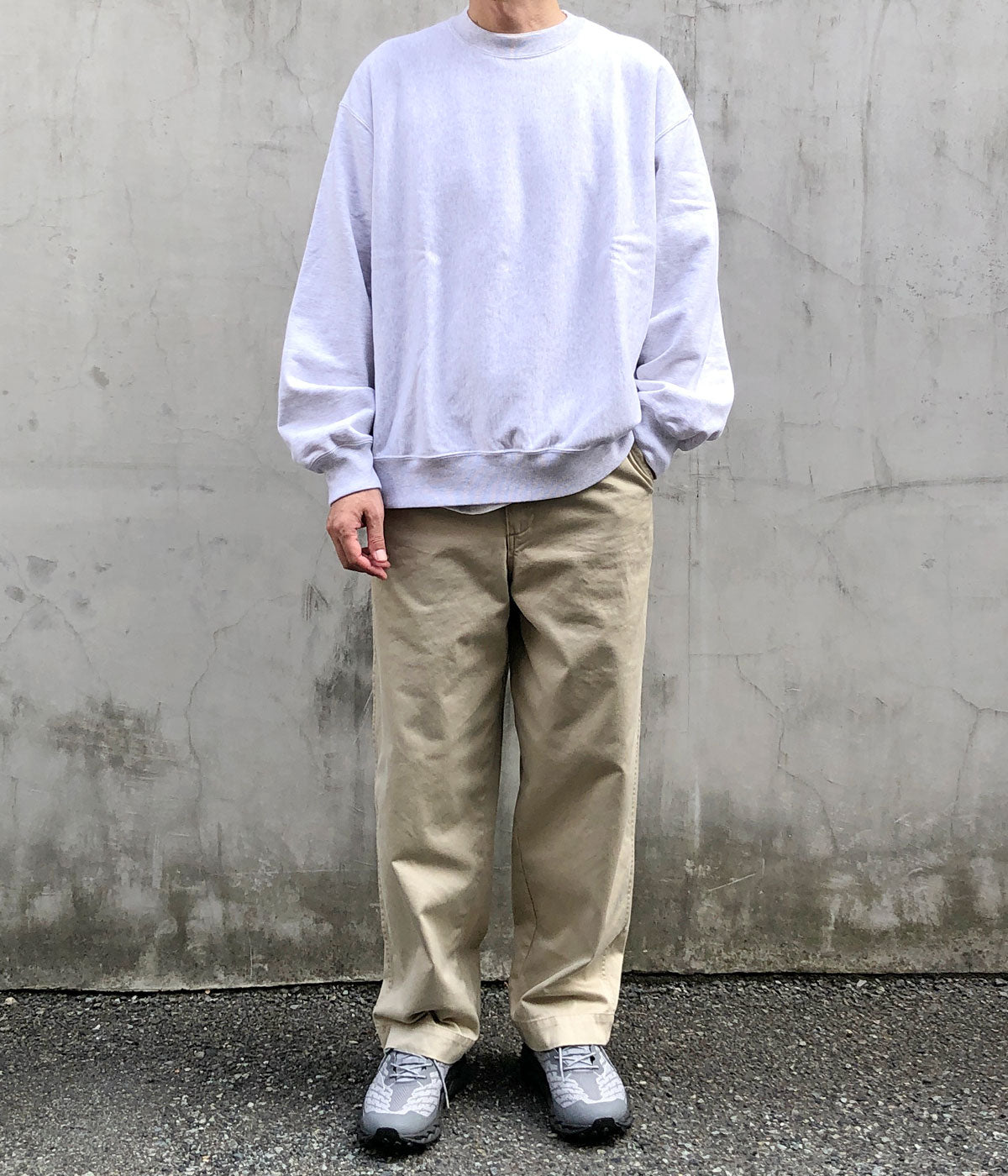 blurhms ROOTSTOCK/SOFT&HARD SWEAT CREW-NECK P/O WIDE (HEATHER WHITE)