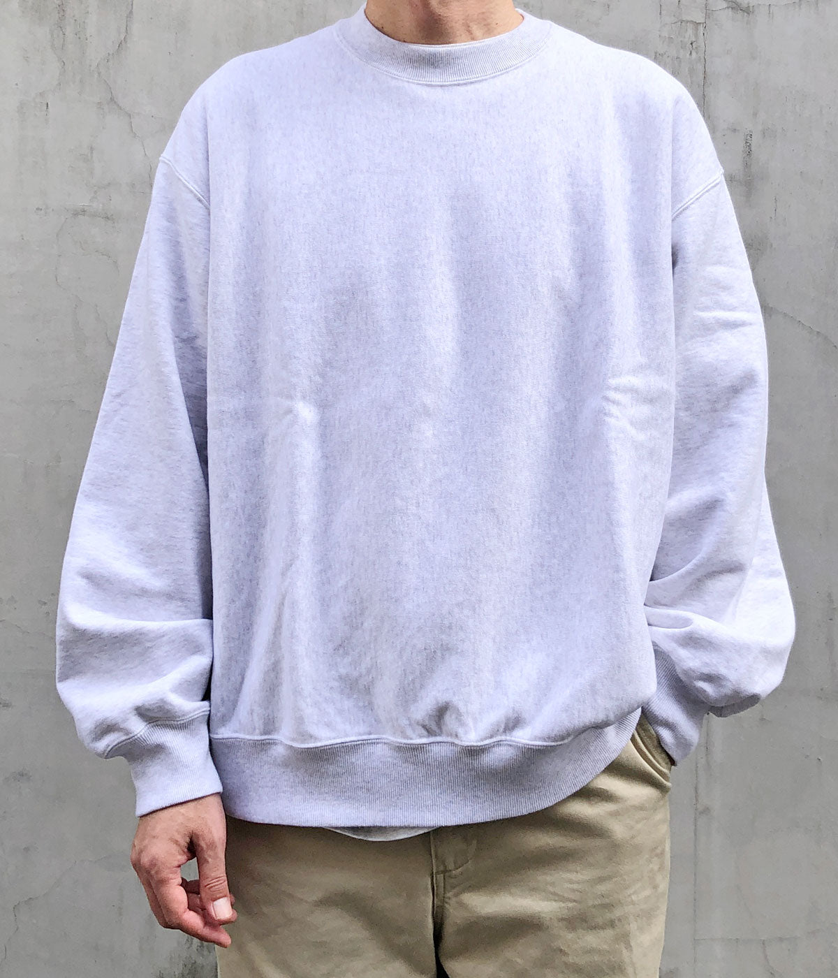blurhms ROOTSTOCKから、SOFT&HARD SWEAT CREW-NECK P/O WIDEが入荷しました。裏のパイルループに無撚糸を仕様して肌触りをソフトに仕上げたクルーネックスウェット。ほのかな光沢が上品な印象を持ち、綺麗なシルエットを保つためハリとコシを強く低伸縮に仕上げつつも、着用時に最高の着心地になるように編み上げた至高の素材感。サイドパネルの切り替えられたパターンを採用。