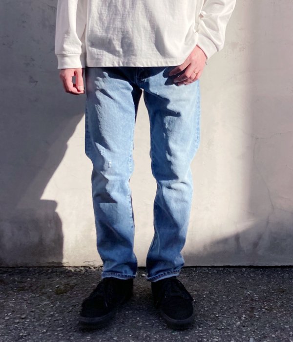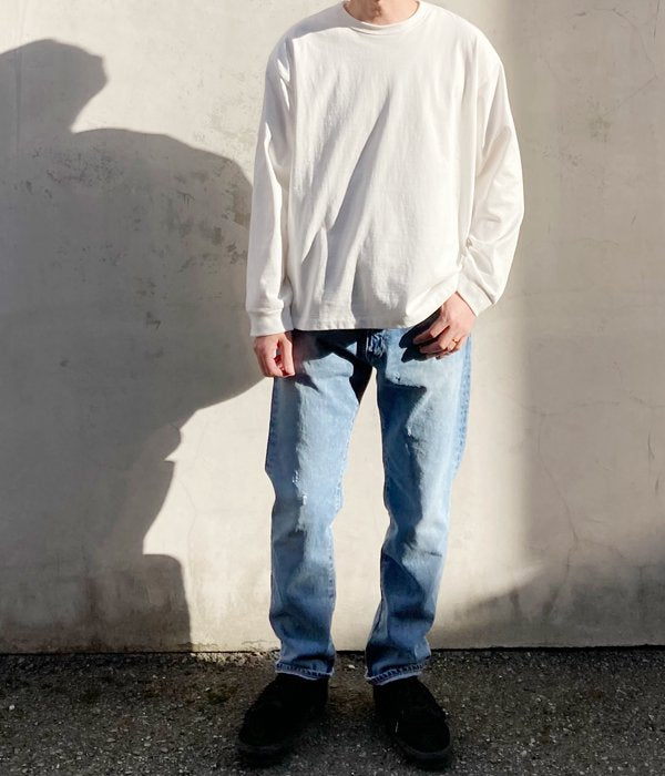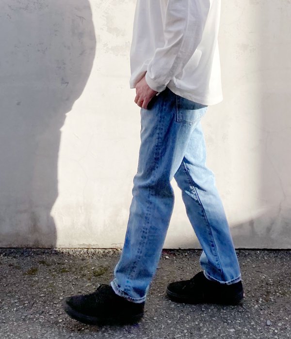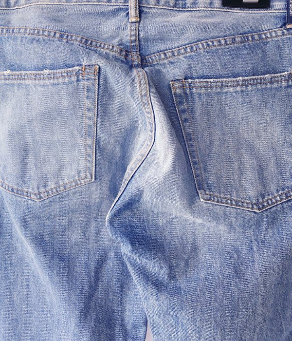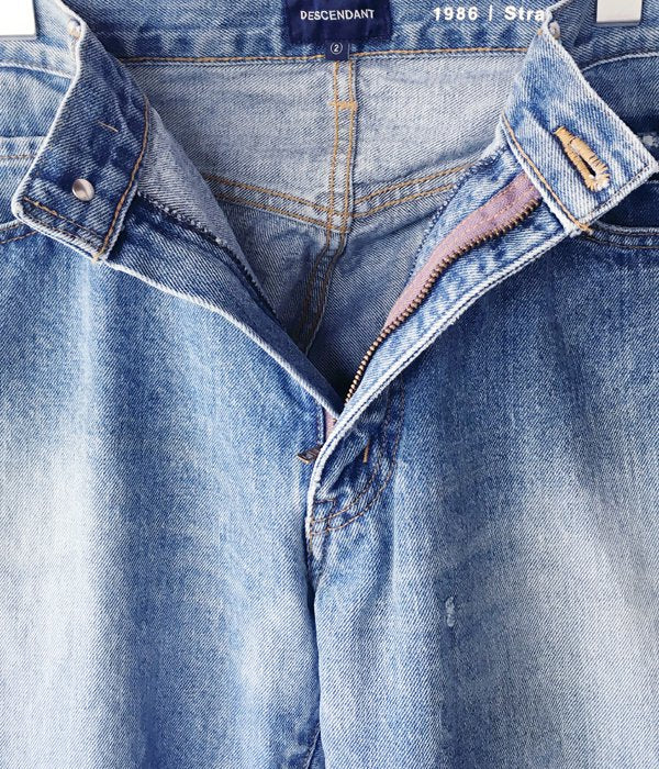 DESCENDANTから、1986 STRAIGHT JEANSが入荷しました。13ozデニムに抜群のセンスで施したウォッシュ加工が映える、アイスブルーのデニムパンツ。バギーとスリムの中間のゆったりとしたシルエットが1986の響きにマッチする絶妙なシルエット。