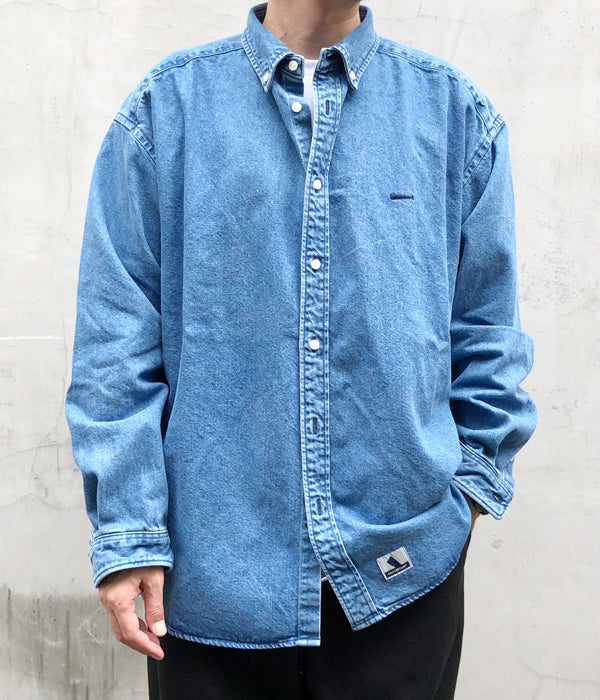DESCENDANTから、ALLEN DENIM LS SHIRTが入荷しました。12ozのコットンデニム製のボタンダウンシャツ。ウォッシュ加工を施した味のある表情がこなれた雰囲気を与えてくれます。胸元のクジラの刺繍と、裾のデザインパッチがポイント。ゆったりとした身幅の定番モデルです。