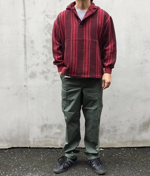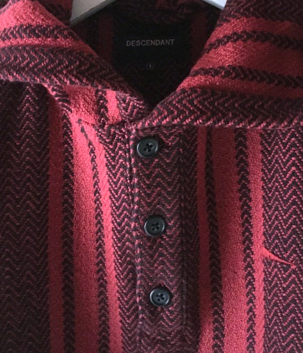 DESCENDANTから、BAJA HOODED LS SHIRTが入荷しました。先染めストライプ柄のコットン製メキシカンラグ素材を使用したP/O HOODED。リブ付きの袖口や、身幅いっぱいのマフポケットと、背中の大きな手刺繍によるクジラのアイコンが目印。