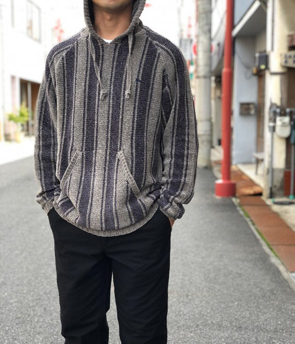 DESCENDANTから、BAJA POLYESTER KNITが入荷しました。DCDT秋冬の定番アイテムであるメキシカンパーカー"BAJA KNIT"を、ストライプ柄のジャカードニットで仕立てました。マフポケットとCACHALOTロゴ刺繍でアクセントを。柔らかく優しい着心地のポリニットを使用しています。