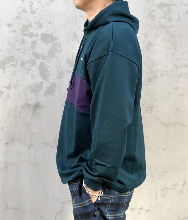 DESCENDANTから、BERRYS HENLEY NECK HOODED LSが入荷しました。がしっと生地目の詰まったコットン裏パイル素材を使用した変形デザインのプルオーバー。2つボタンのヘンリーネックにフードをドッキングしたボーイッシュなデザイン。バストのパターンに施したカラー切り替えがポイントです。
