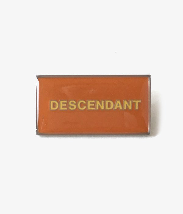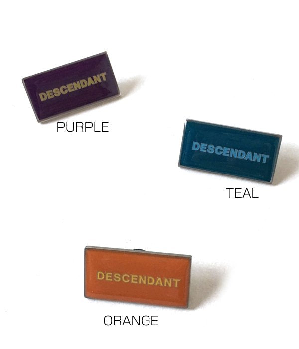 スクエアなBOX LOGOのピンバッチをキーカラーの3色で。