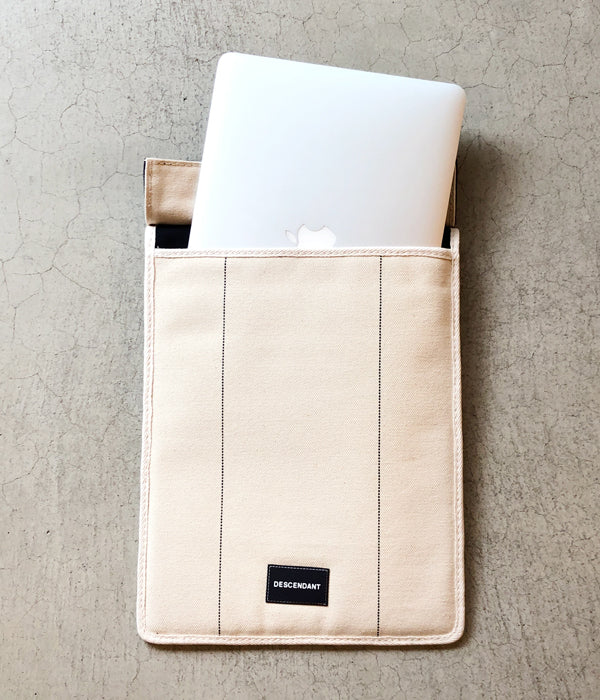 DESCENDANTから、BRIEFCASE POUCH raregemが入荷しました。厚手の4号帆布を使用しraregemと共同で作製したブリーフケース。インナーに滑らかな素材を配し書類の出し入れもスムーズに、16インチまでのラップトップPCを収納可能な機能的な作り。