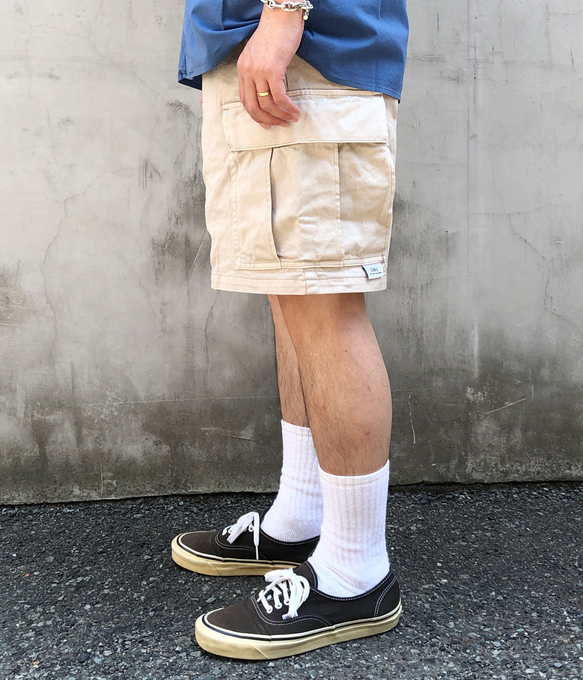 DESCENDANTから、BUCKET CARGO SHORTSが入荷しました。コットンツイル製のカーゴショーツにピグメントダイ加工を施した1着。フェード感のあるこなれた表情がポイントです。ゆったりとしたシルエットに仕立て、カーゴポケット下部にDWUのパッチタグ、背面にBOX LOGOの刺繍で飾り付けたデザイン。