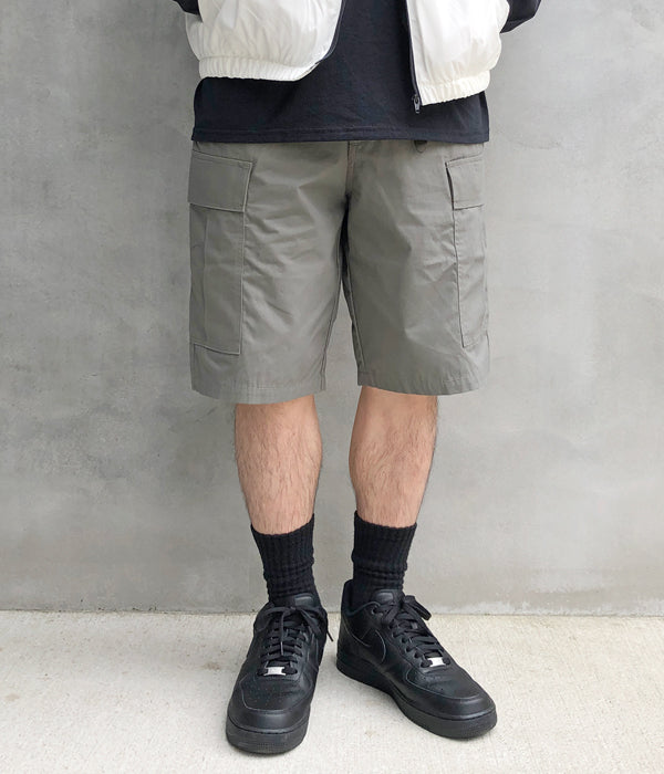 DESCENDANTから、BUCKET CARGO SHORTSが入荷しました。コットン製のミリタリーウェザー素材を使用した6ポケットカーゴショーツ。ゆったりしたシルエットに仕立て、大きなカーゴポケットが目印のクラシックスタイル。DWUのロゴパッチをワンポイント。