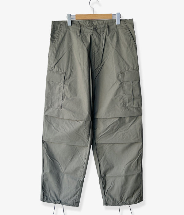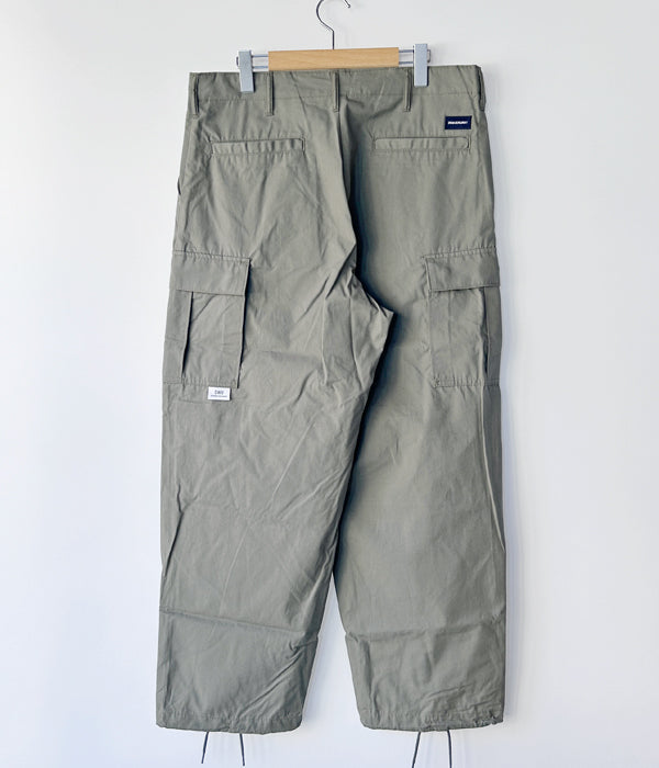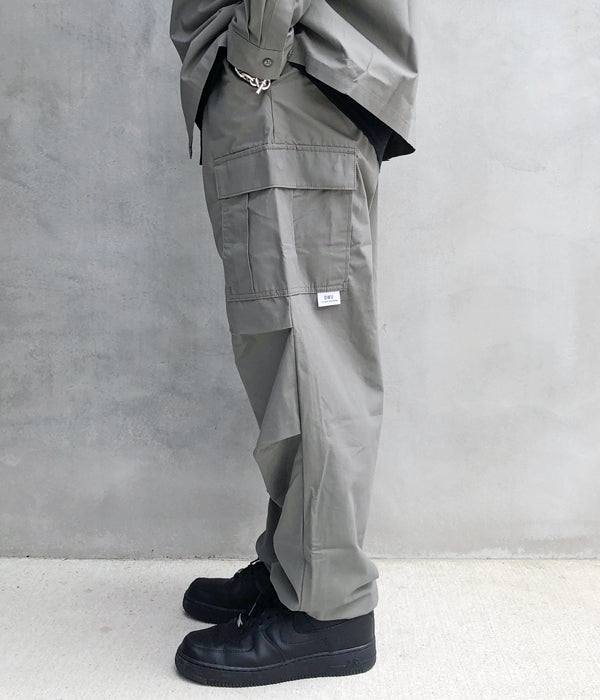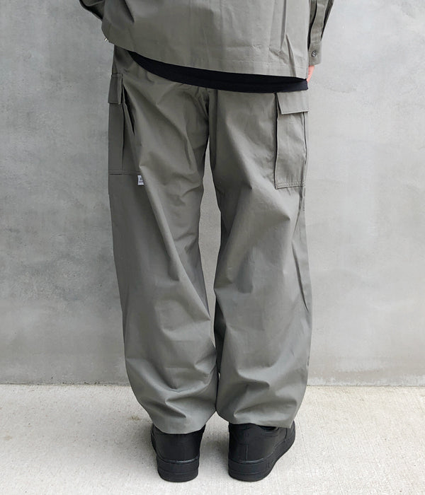 DESCENDANTから、BUCKET CARGO TROUSERSが入荷しました。コットン製のミリタリーウェザー素材を使用した6ポケットカーゴパンツ。膝のアクションプリーツ、裾周りにドローコードを仕込んだミリタリー様式に沿ったデザイン。DWUのロゴパッチをワンポイント。