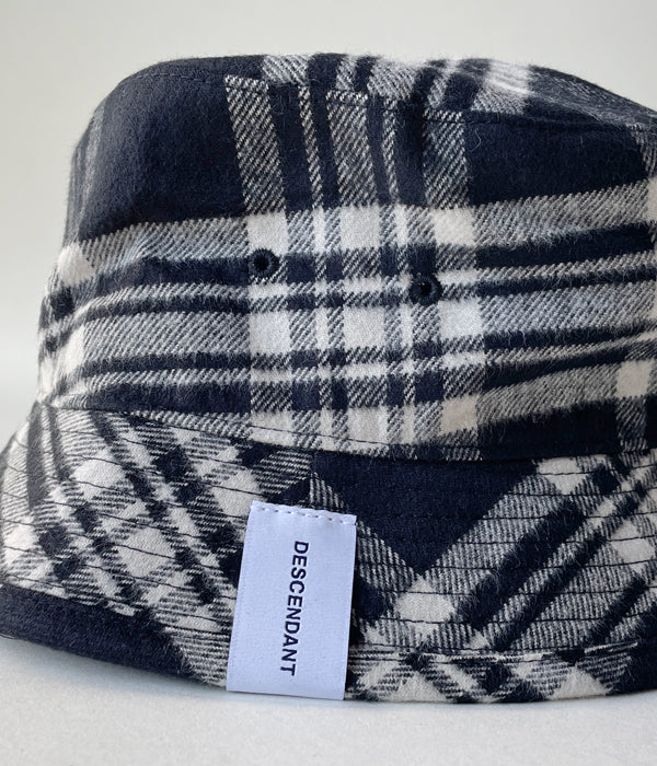 DESCENDANTから、CACHALOT BUCKETが入荷しました。起毛を与えたフランネル素材を使用したタータンチェックのバケットハットです。側面にブランドロゴの織りネーム、背面にCACHALOTの刺繍で飾り付けました。ぬくもりを感じる季節感のあるひと品。