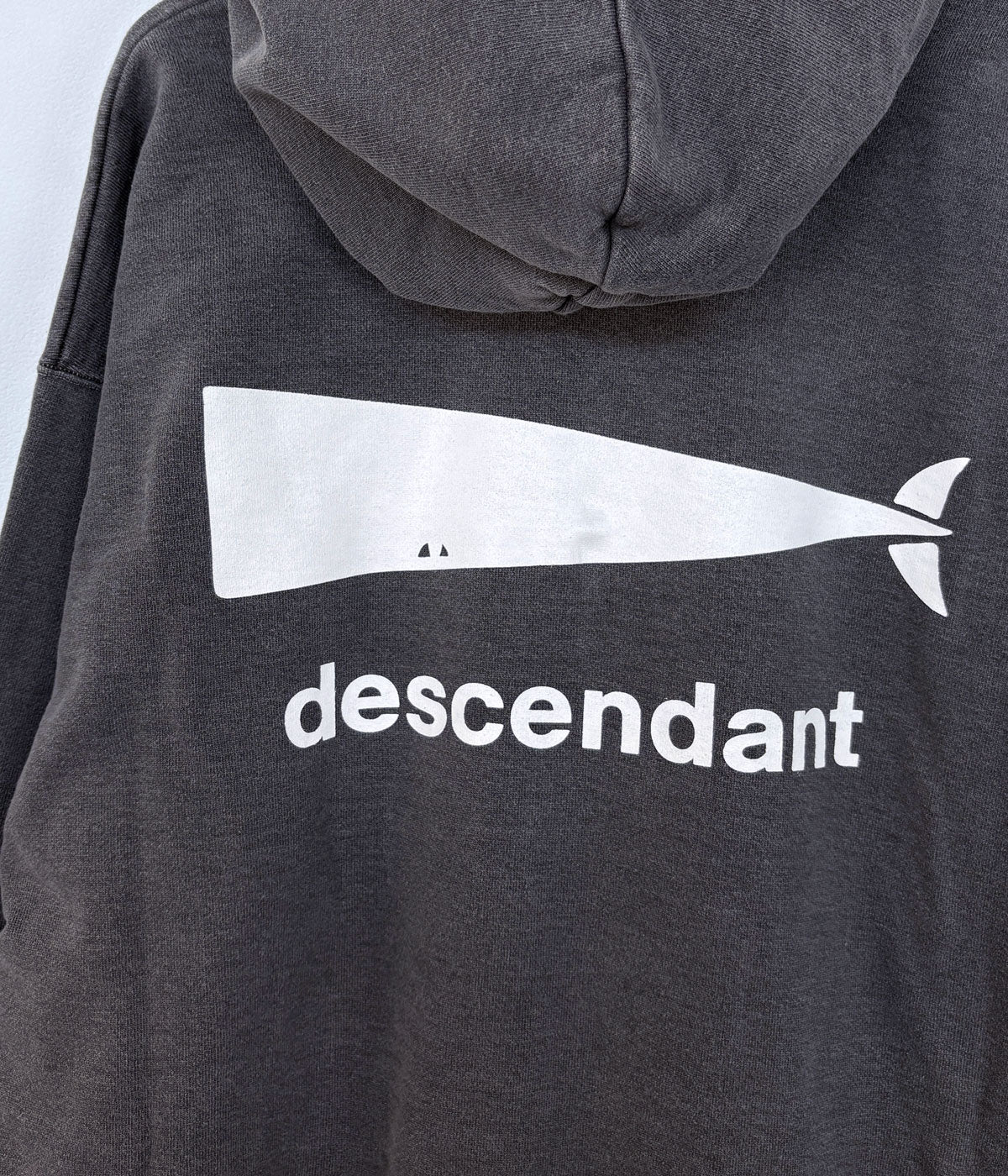 DESCENDANTから、CACHALOT HOODY PIGMENT DYEが入荷しました。厚手のコットン裏毛を使用したフーディーウェットシャツ。ピグメントダイ加工による色褪せた表情に、大きくバックプリントでCACHALOTのプリントをあしらったデザイン。
