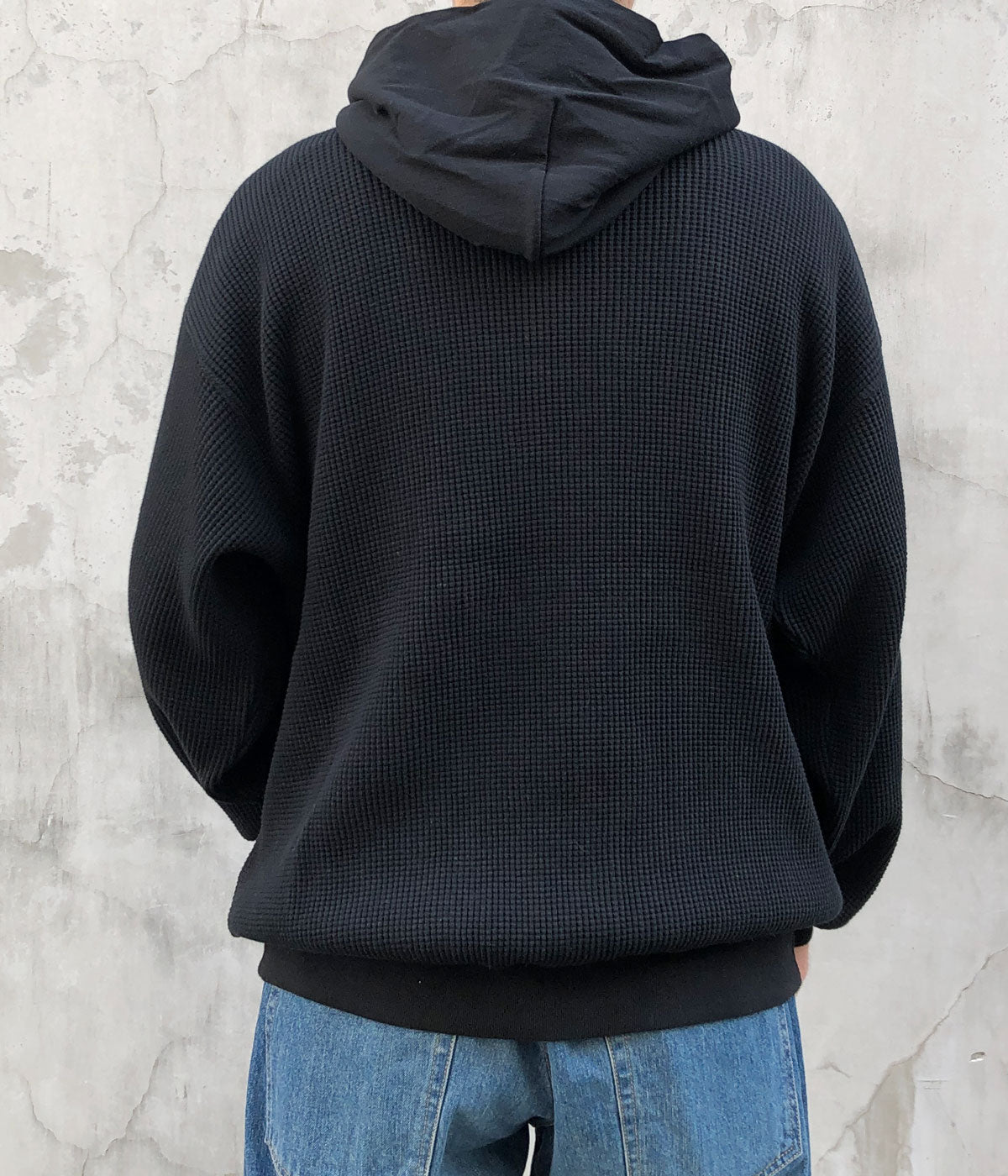 DESCENDANT/CACHALOT WAFFLE HOODY (BLACK)