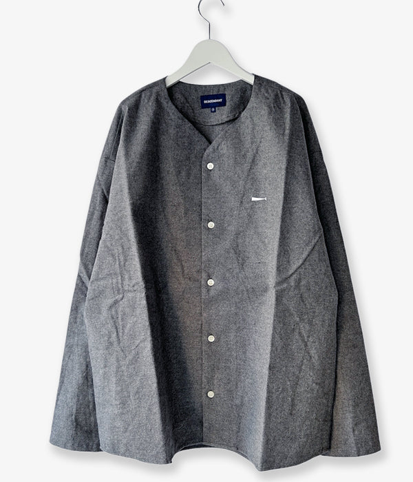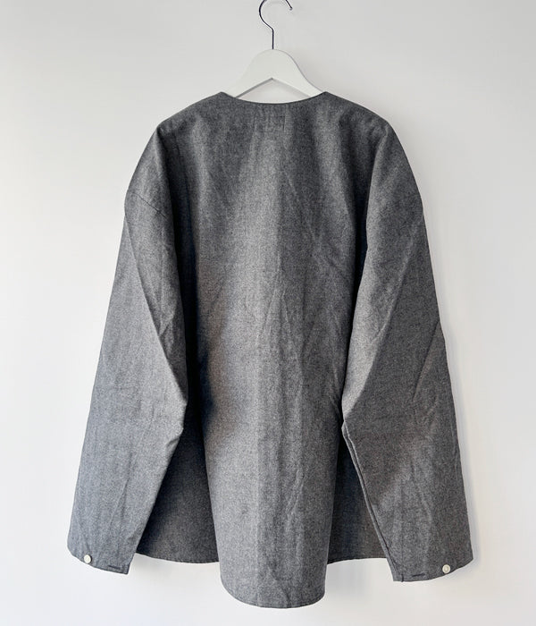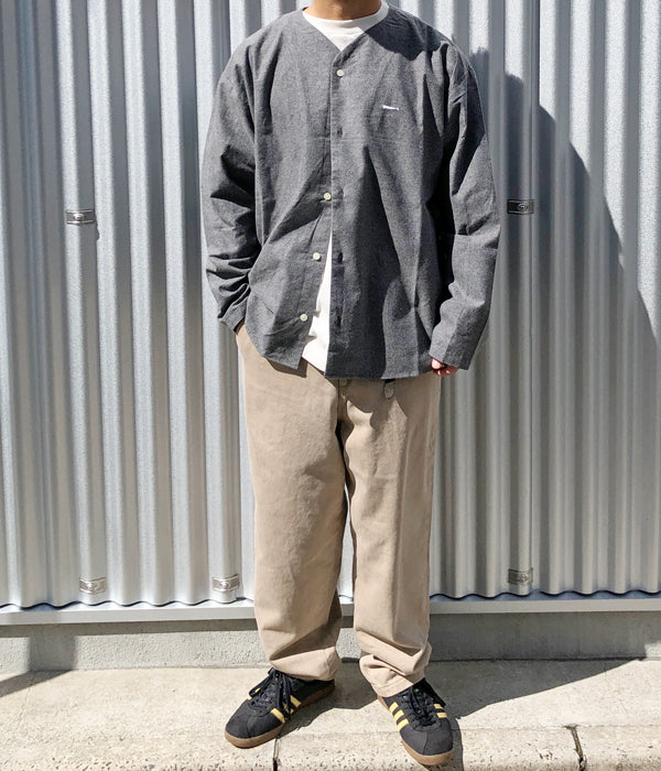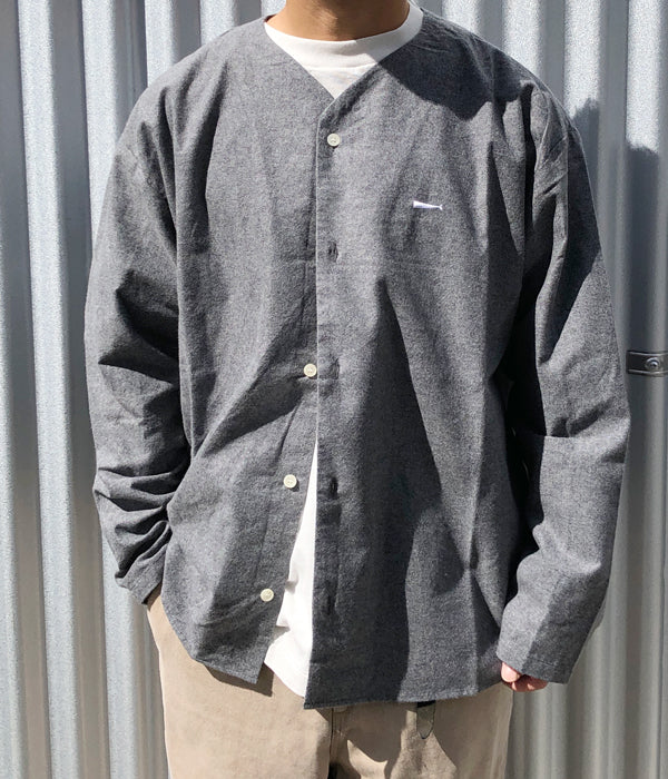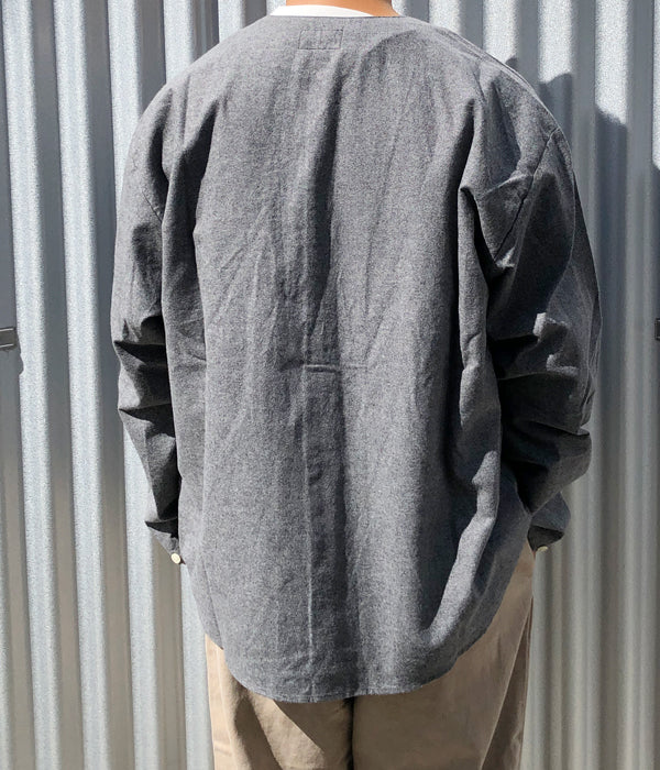 DESCENDANTから、CCN COTTON CARDIGANが入荷しました。先染めによるコットン素材を使用したノーカラーシャツ。浅めのVネックと筒袖がカーディガンのようなデザインで、さらっと羽織るのに丁度よい1着。袖口のデザインがポイントです。