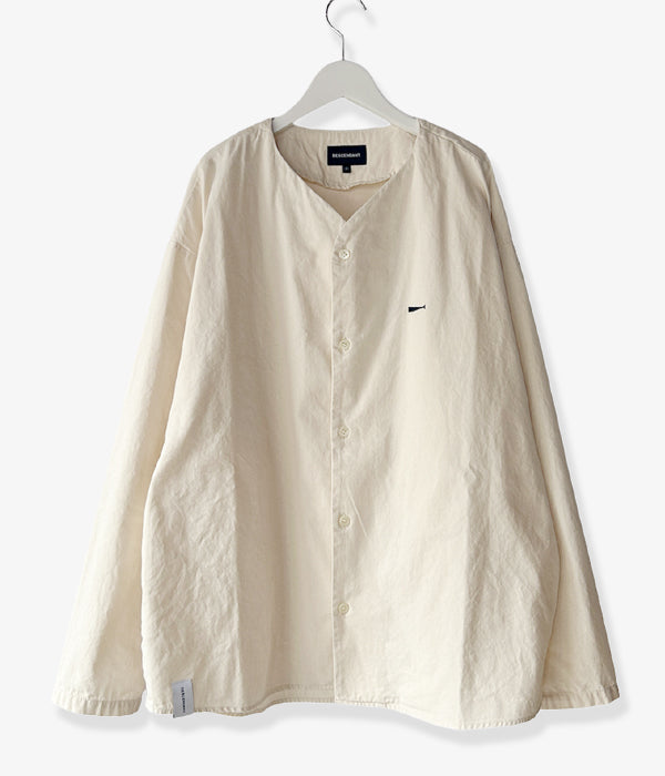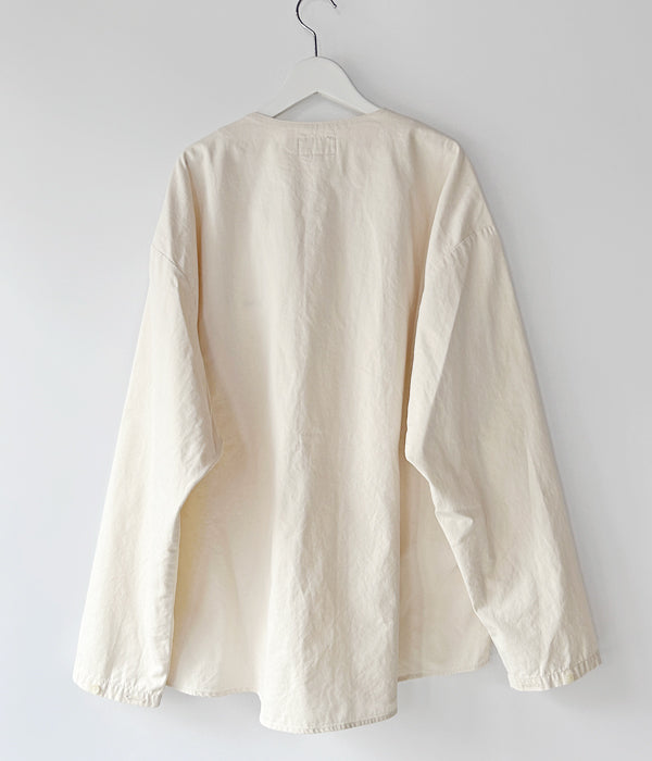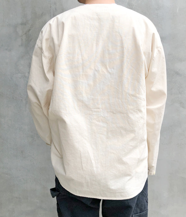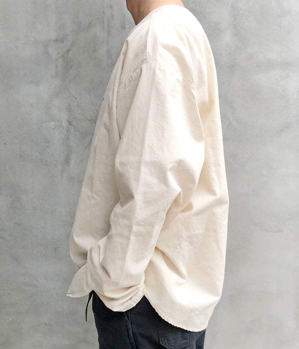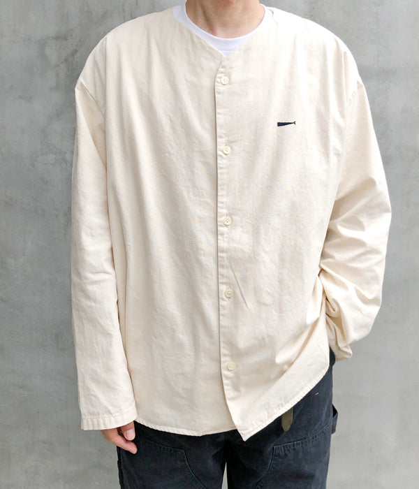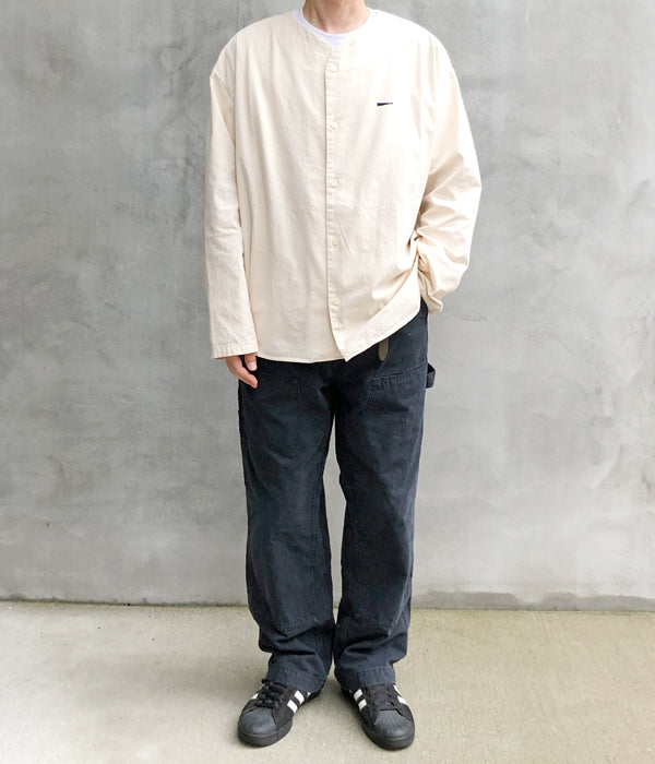 DESCENDANTから、CCN COTTON CARDIGANが入荷しました。ハリのあるコットンオックス素材を使用したノーカラーシャツ。浅めのVネックと筒袖がカーディガンのようなデザインで、春先にさらっと羽織るのに丁度よい1着。袖口のデザインがポイントです。