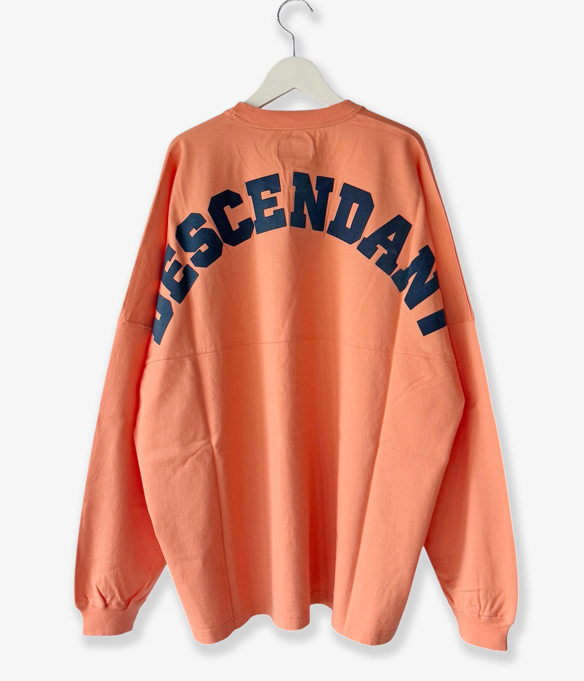 DESCENDANTから、CETUS JERSEY LSが入荷しました。身幅の広いシルエット、前身頃のヨークの切り替えが特徴の定番モデルをコットン天竺素材で仕立てました。バックスタイルに"DESCENDANT"のフロッキープリントをアーチ状に大きく配置したインパクトのある一着。