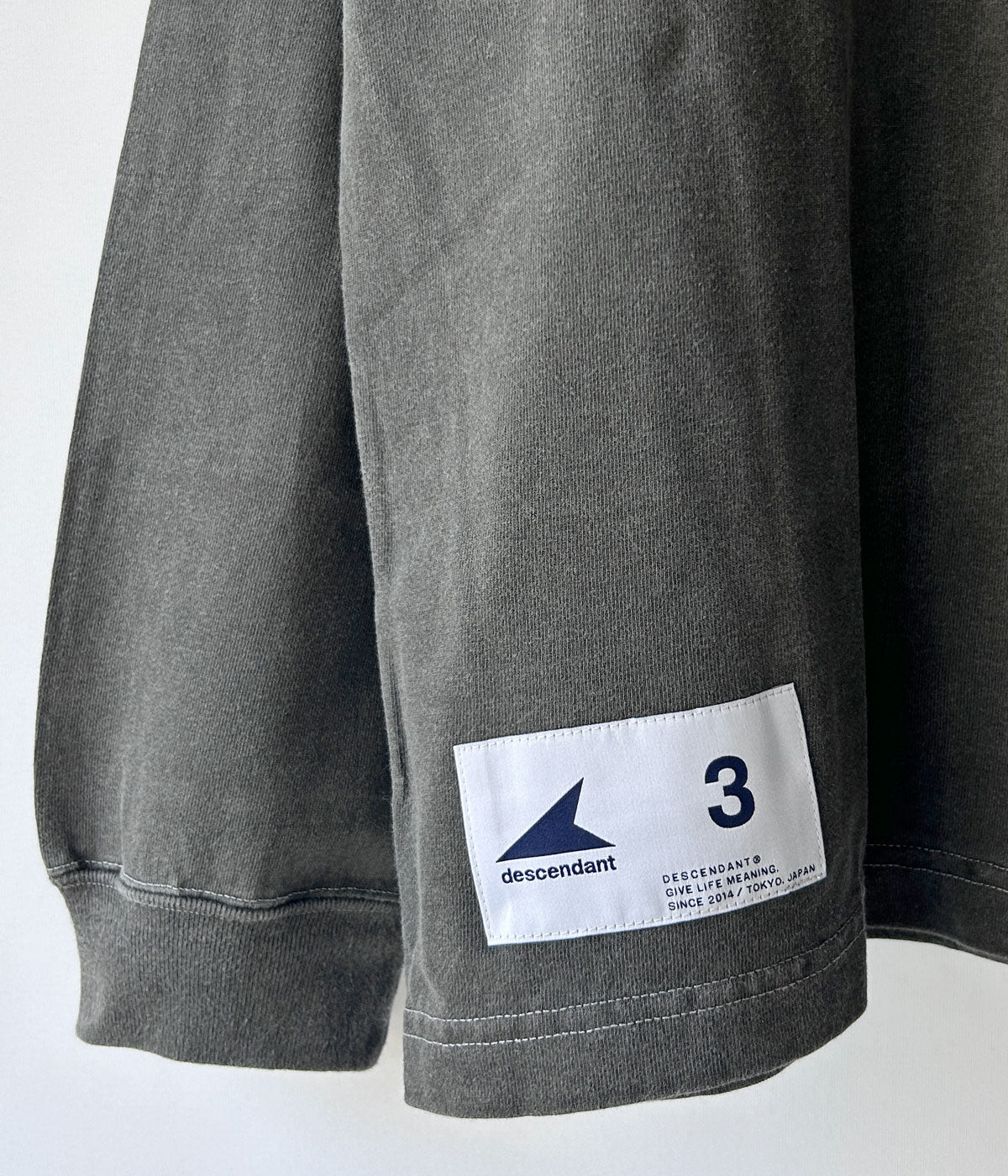 DESCENDANTから、CETUS ORGANIC COTTON LS PIGMENT DYEが入荷しました。コットン天竺製のボディにピグメントダイ加工を与えた、褐色した風合いが特徴のロングスリーブ。背面に大きくあしらったCETUSのグラフィックによるデザイン。右裾にサイズ表記のCETUSパッチをワンポイント。