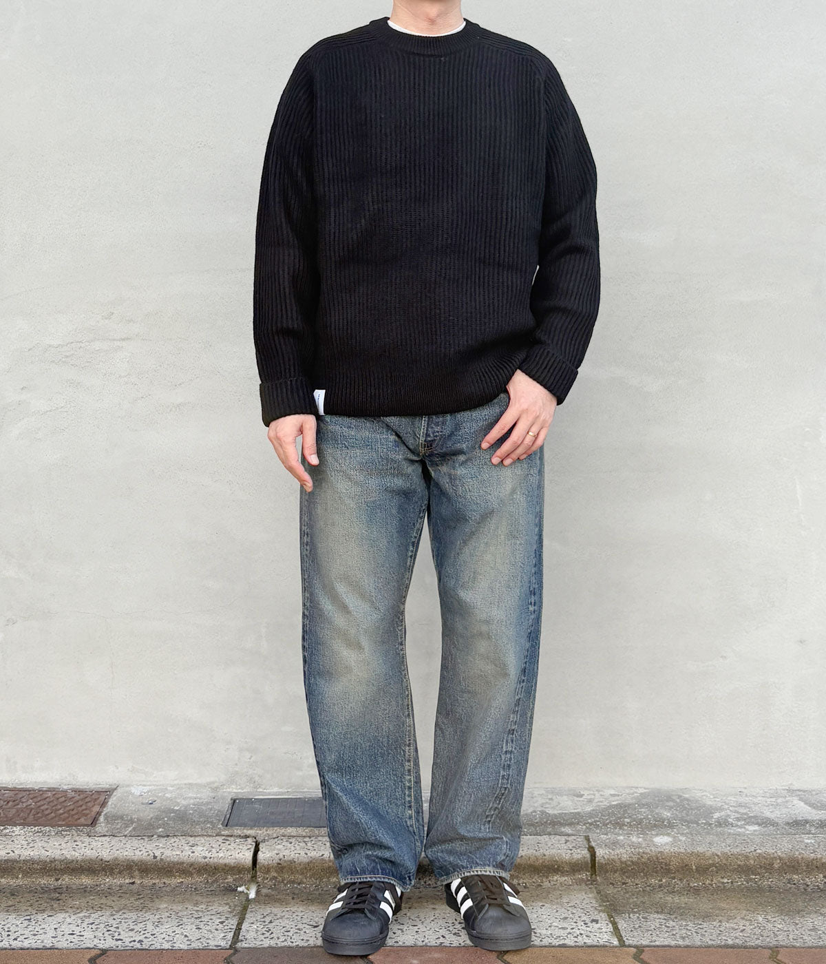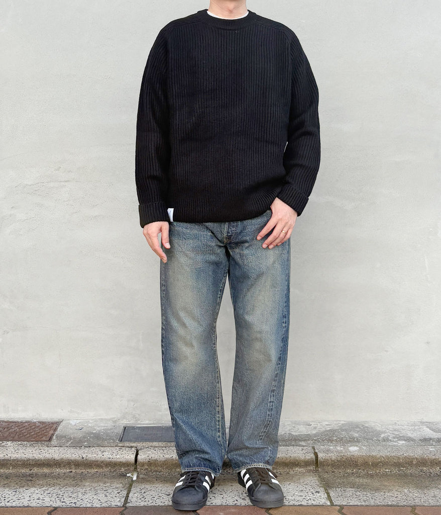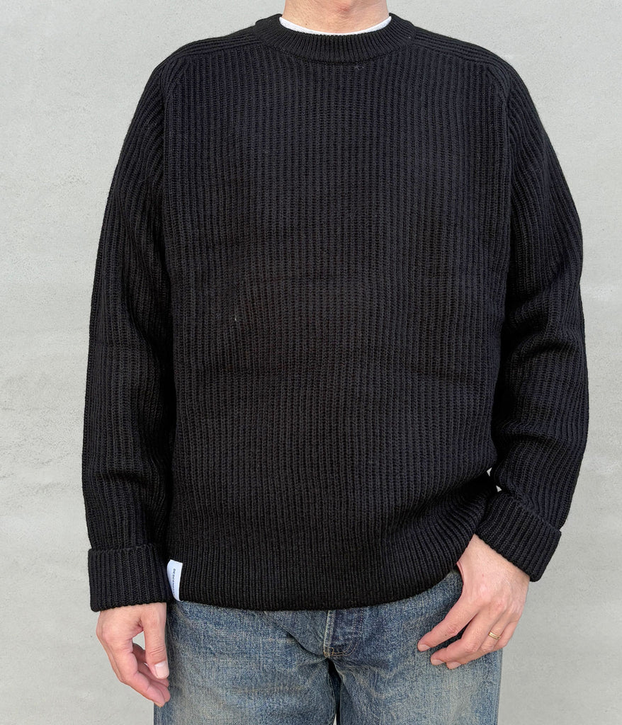 DESCENDANT/CLAM CREW NECK KNIT (BLACK)