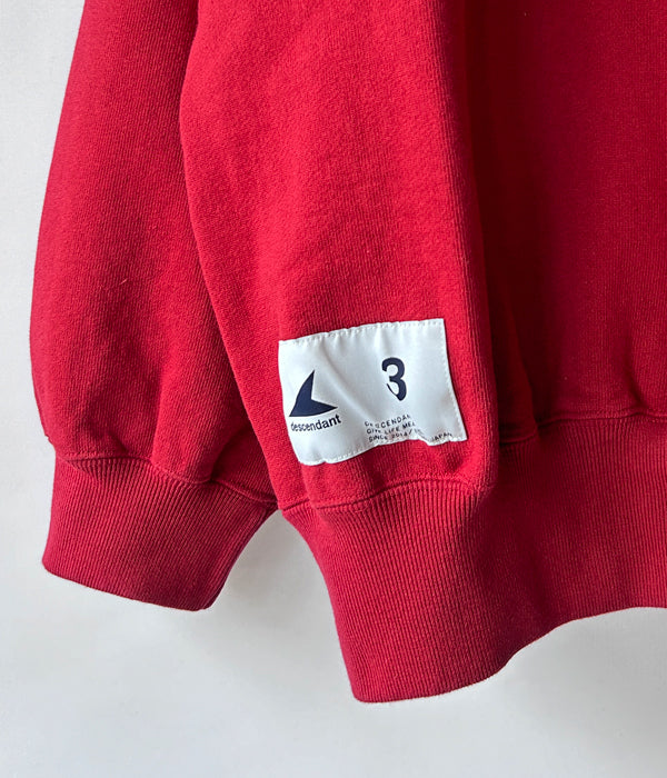 DESCENDANTから、CLUB CREW NECKが入荷しました。厚手のコットン裏毛(裏パイル)素材を使用したクルーネックスウェット。DCDTモチーフのクレストを大きくアップリケであしらったデザイン。ゆったりとした身幅に裾周りを絞ったディティール。左袖にDESCENDANT BOX LOGOのパッチをワンポイント。
