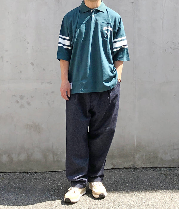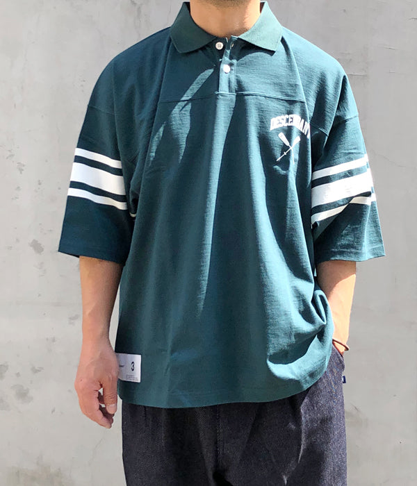 DESCENDANTから、CLUB POLO SSが入荷しました。バストにクロスパドルをモチーフにしたロゴ、両袖にラインをデザインしたポロシャツ。FOOTBALL TEEのようなパネル切り替えをフロントに施し、ワイドなアームホールと身幅の広さが特徴的なシルエットを作り出します。